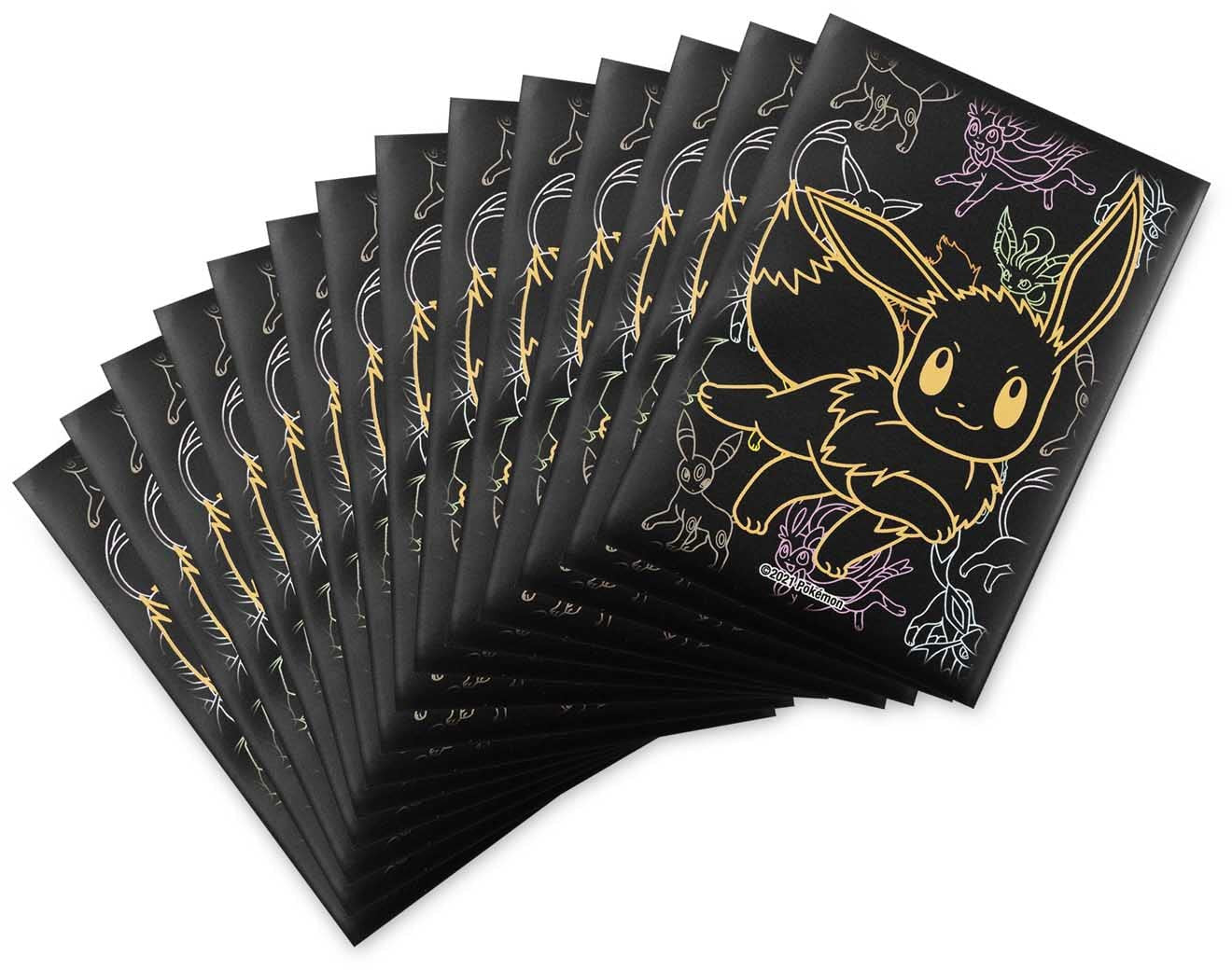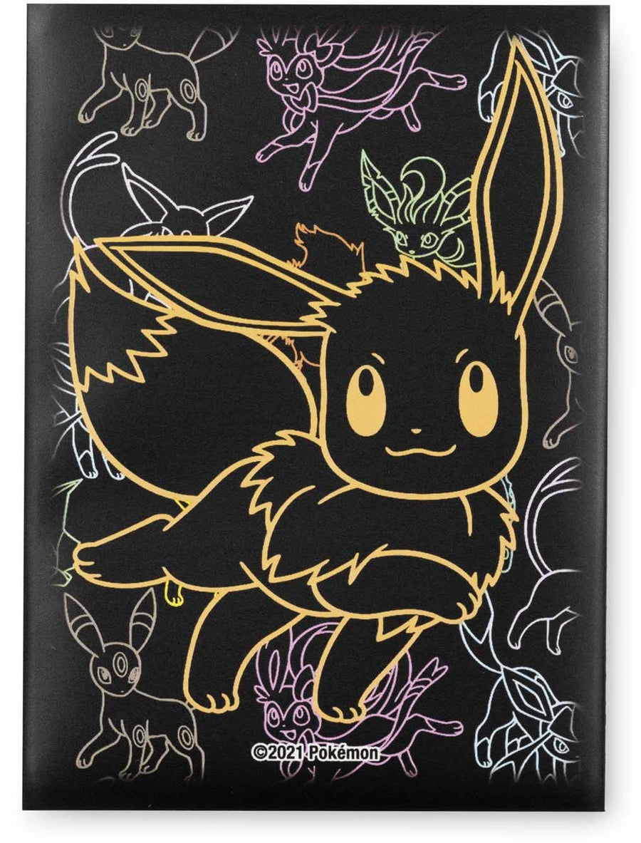 Eevee is full of mysteries, capable of evolving into many different Pokémon. These Eevee Breakaway card sleeves feature an outlined Eevee and its Evolutions on a black background. Better still, this set of sleeves is enough for a full deck plus some extras, just in case. Show them off at your next convention, tournament, or battle!