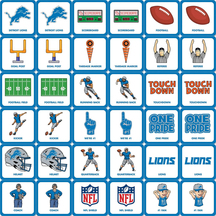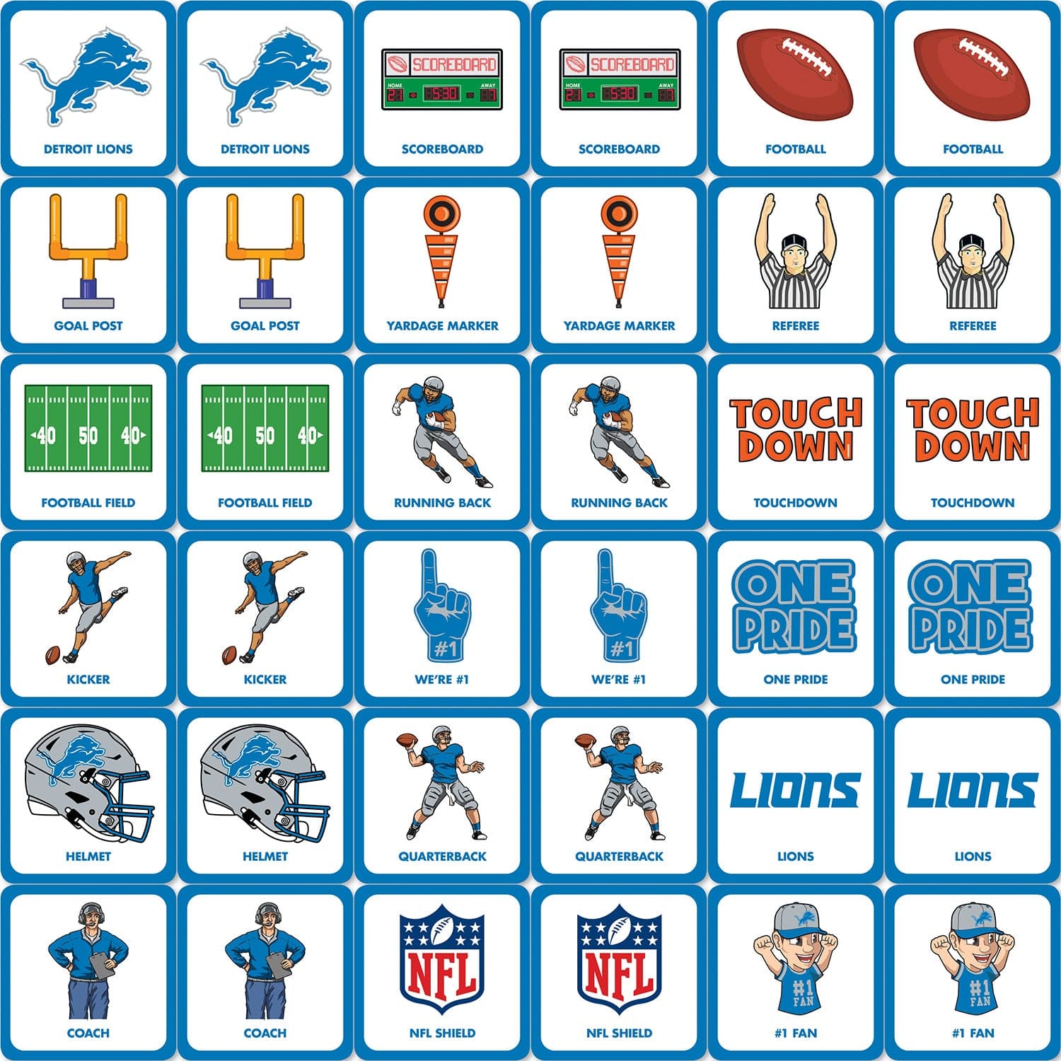 Looking for a fun way to spend some time with the family? Look no further than the NFL Detroit Lions Matching Game. This exciting game puts a sports spin on the classic matching game, and is perfect for children, adults, and families of all ages. With 18 unique pairs of symbols, it's sure to keep you entertained for hours on end. Plus, the officially licensed NFL picture cards are made with high-quality stock for durability and lasting enjoyment. So grab a partner and get ready to test your memory and sports knowledge with the NFL Detroit Lions Matching Game!