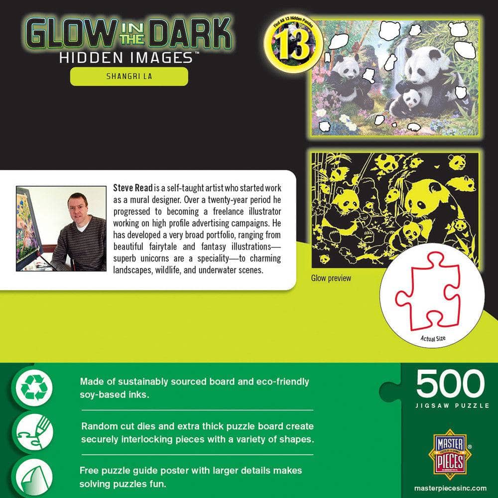 These MasterPieces 15" x 21" 500pc Hidden Image Glow-in-the-Dark Puzzles feature various ocean and wildlife scenes, each with special, hidden animals or objects, some of which glow-in-the-dark, and others who hide in plain sight. Artist, Steve Read hides amazing hidden images within each beautiful piece of art, and his puzzles never disappoint. Find all the secrets in these wildly entertaining puzzles! To reduce their impact on our environment, the chipboard used in these puzzles is made of 100% recycled material.