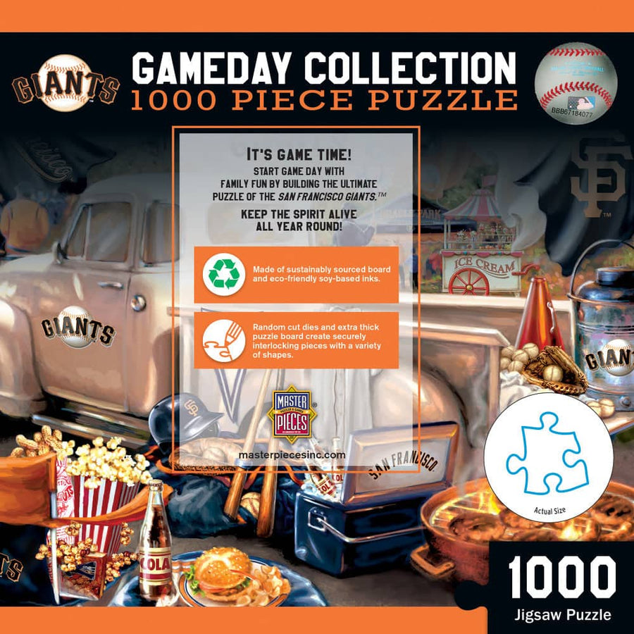 This MasterPieces MLB 1000pc 19.25" x 26.75" San Francisco Giants Puzzle is perfect for any Giants fanatic. Now fans can play all year long! To reduce its impact on our environment, the chipboard used in this puzzle is made of 100% recycled material.