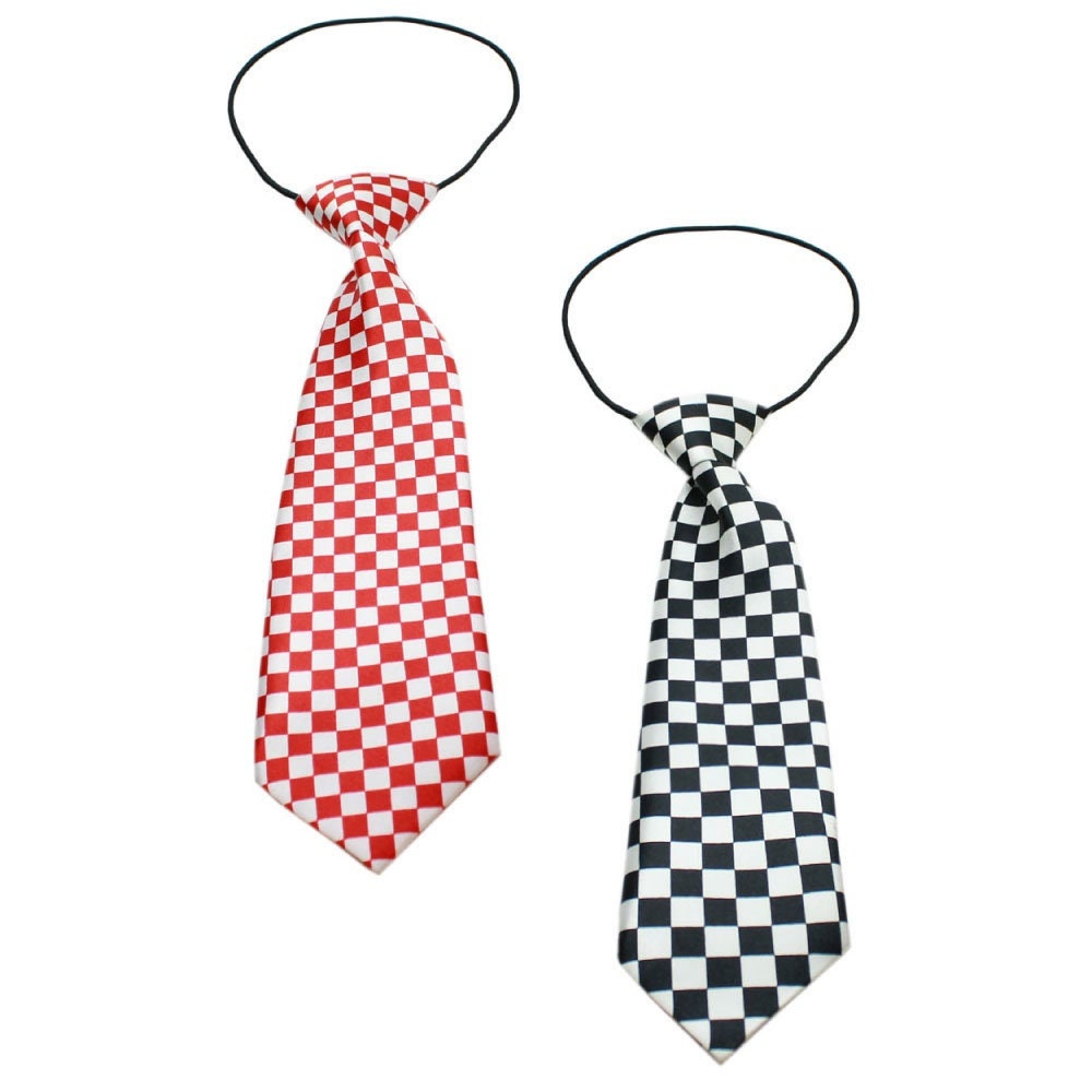 Decorative and sophisticated! These neck ties are for big dogs or pets, and come with a durable elastic band that will stretch to fit necks from 11"- 22". The necktie itself is made from elegant silky polyester and measures 2 ½” wide and 11" tall. Can be worn with or without a collar.