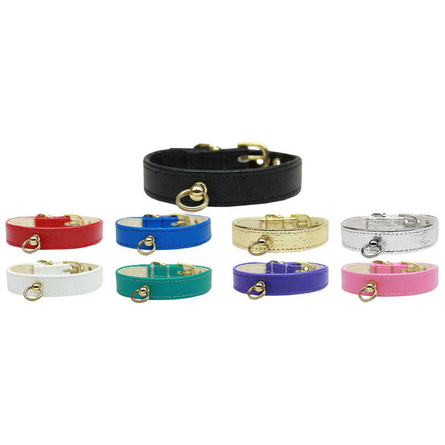 Simple, yet elegant! These ¾" wide blank collars taper down to ½" near the buckle for a more comfortable fit, and come with a center post where a pet ID tag can be attached.