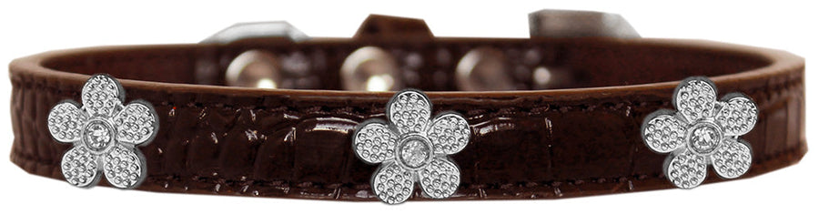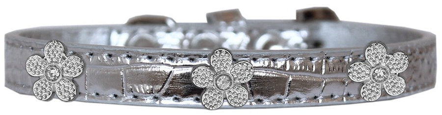 Dog, Puppy & Pet Designer Croc Widget Collar, "Silver Flowers"