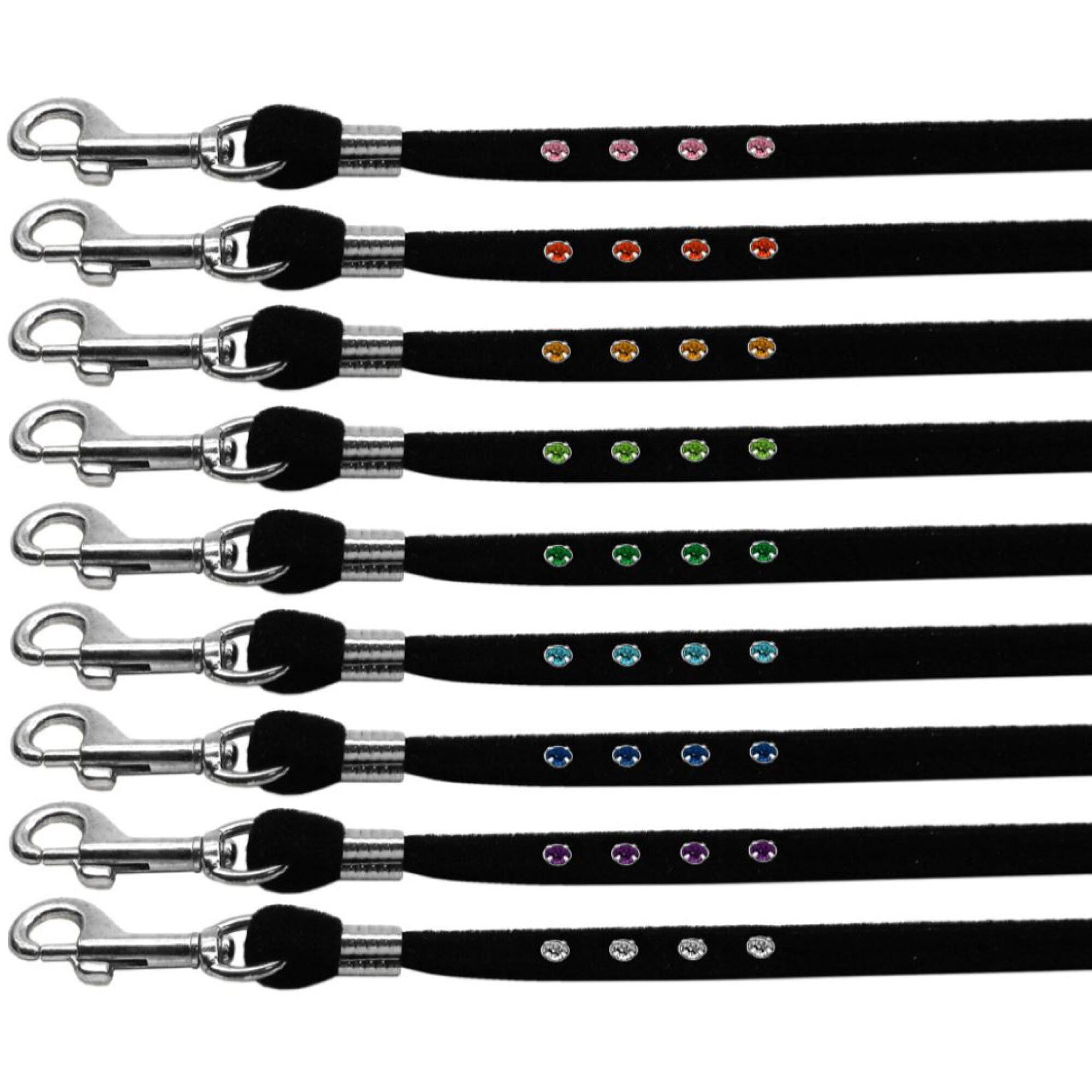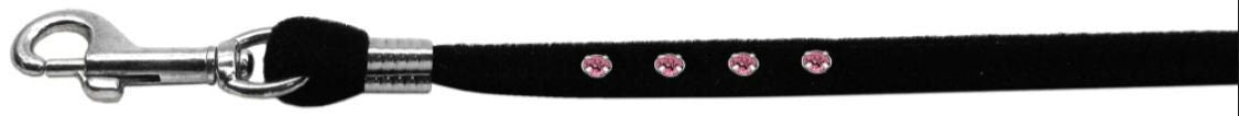 Wonderful leashes made to match our black velvet rhinestone collars! The leashes are 3/8" wide, 4 foot long and come adorned with 4 crystals near the snap and 4 crystals by the handle.