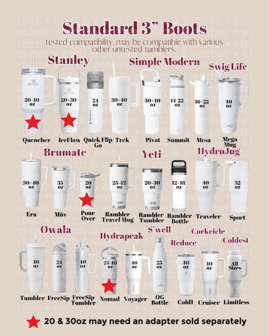 Enhance the durability of your favorite tumblers with our Silicone Tumbler Boots – a perfect blend of style and functionality! Please note that orders for these protective boots cannot be canceled or changed once placed. For further details, we encourage you to review our refund policy. Safeguard your tumbler in style and make a lasting investment in practicality today!