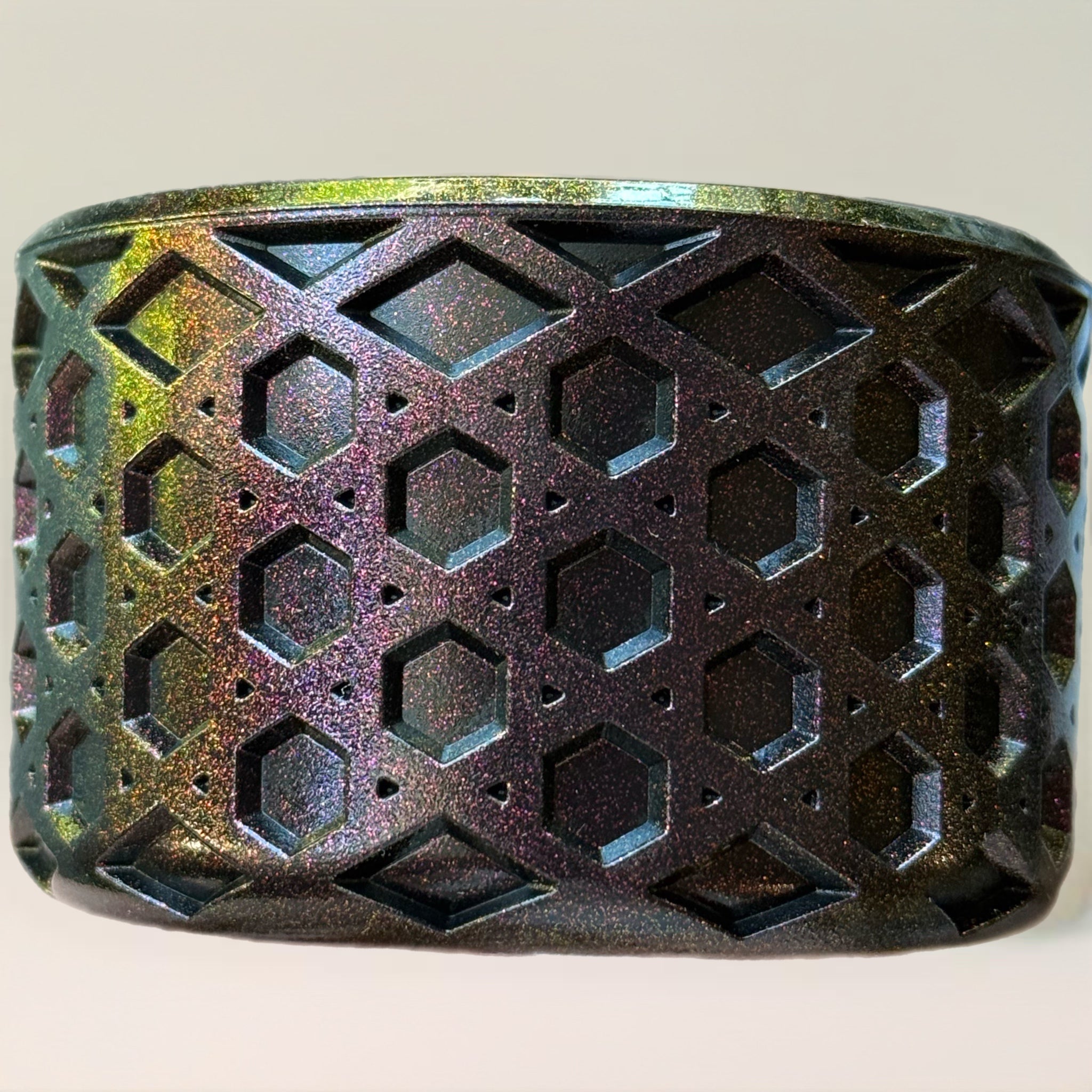 Printed designs may appear stretched in certain areas due to the hydro printing technique used. This is normal and expected.