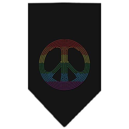 Pet and Dog Bandana Rhinestone, "Rainbow Peace Sign"