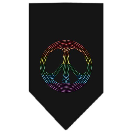 Pet and Dog Bandana Rhinestone, "Rainbow Peace Sign"