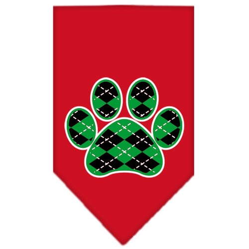 Pet and Dog Bandana Screen Printed, "Green Argyle Paw"