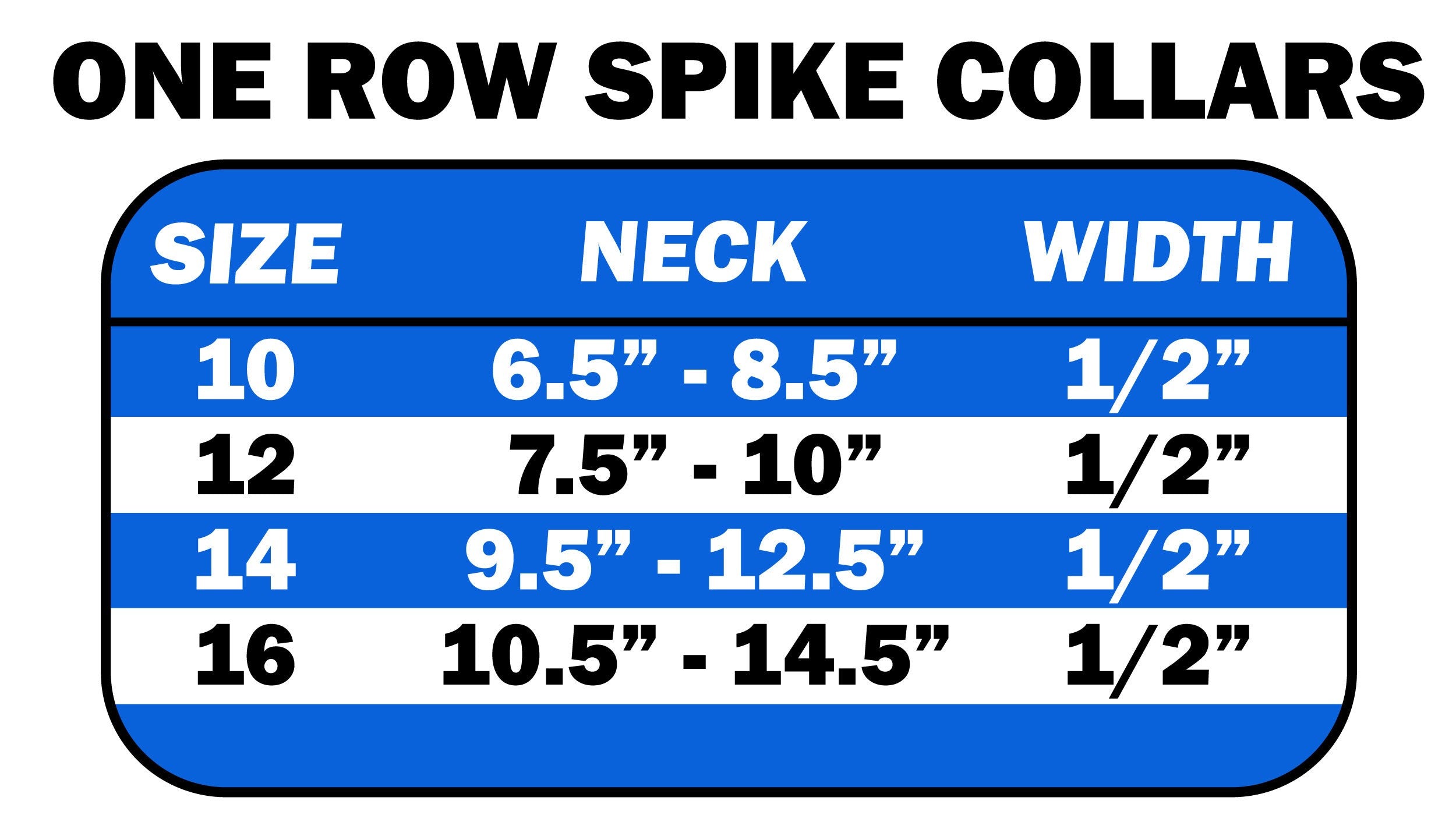 These are 1/2" wide collars with one row of alternating clear crystals and spikes. There is a lot of bling and attitude packed into these collars!