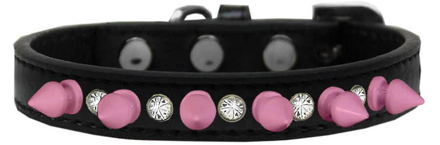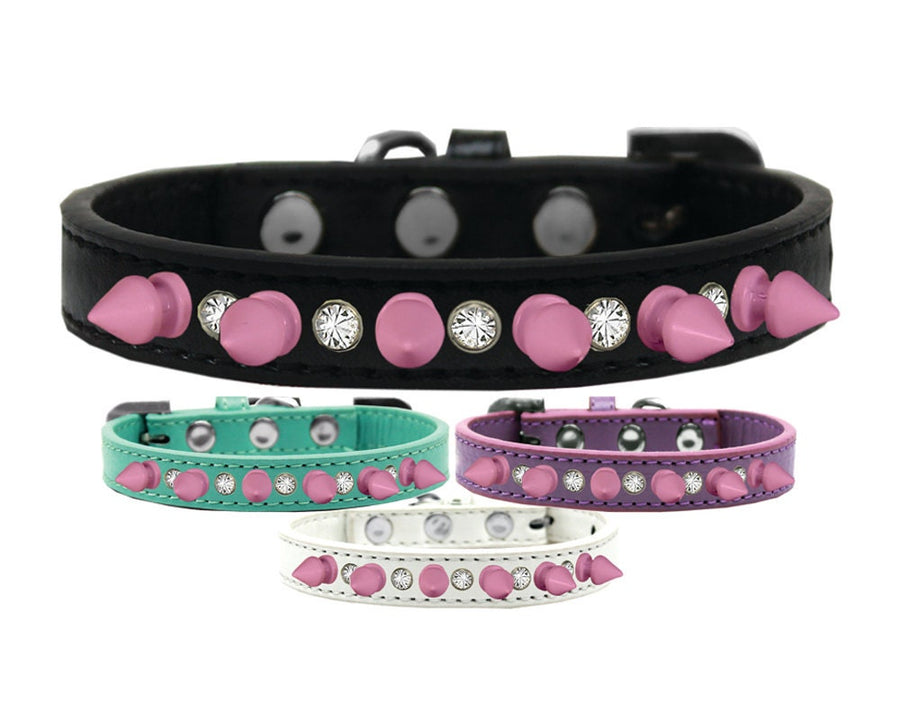 Pet and Dog Spike Collar, "Clear Crystals & Light Pink Spikes”