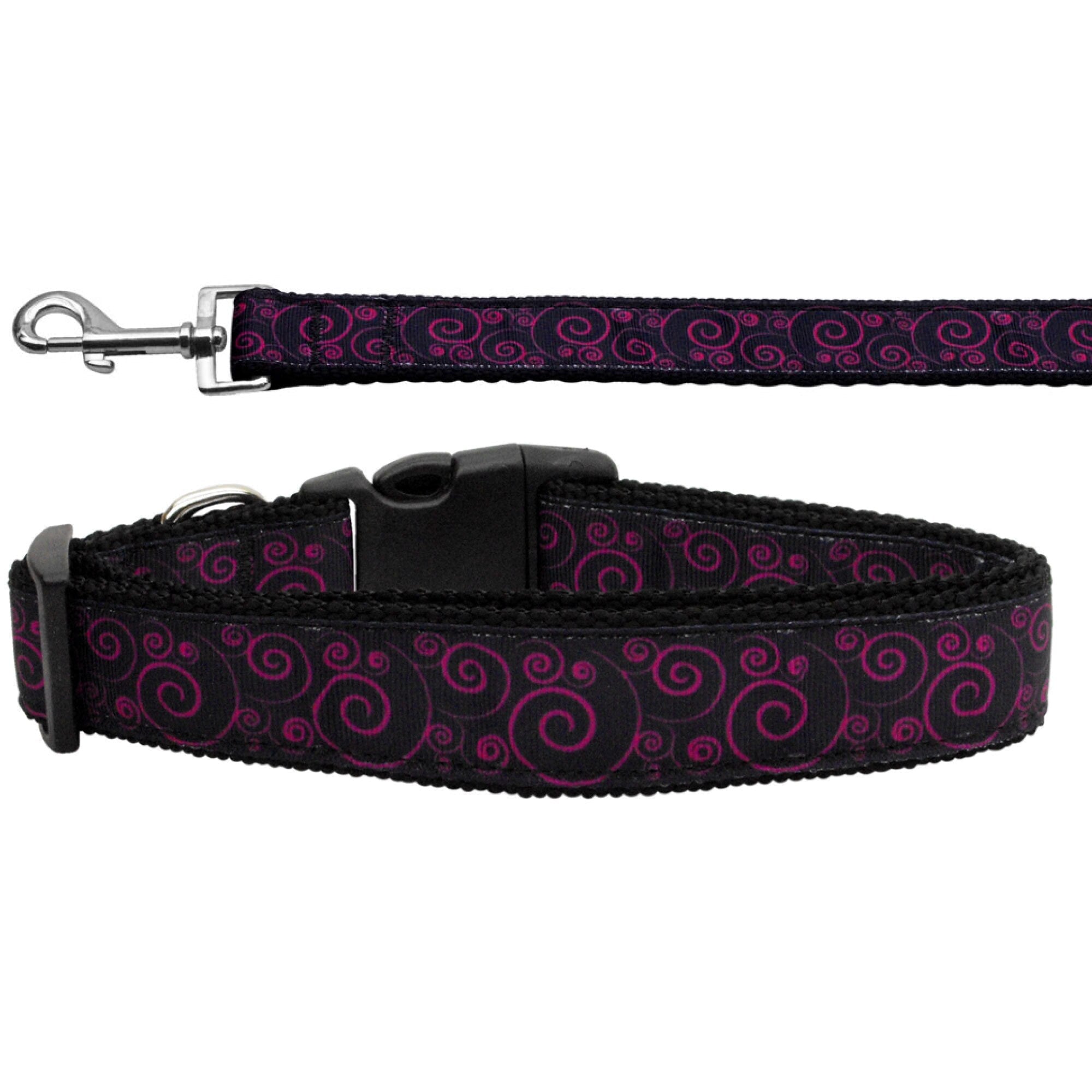 Pet Dog and Cat Nylon Collar or Leash, "Pink & Black Swirly"