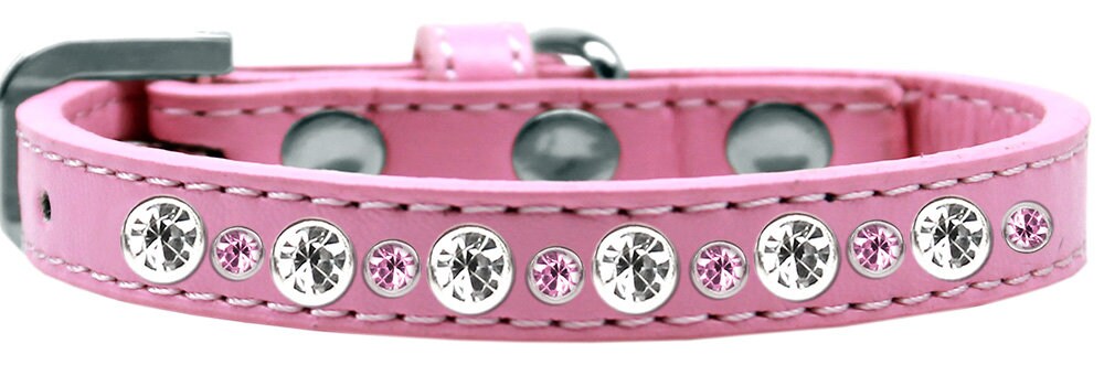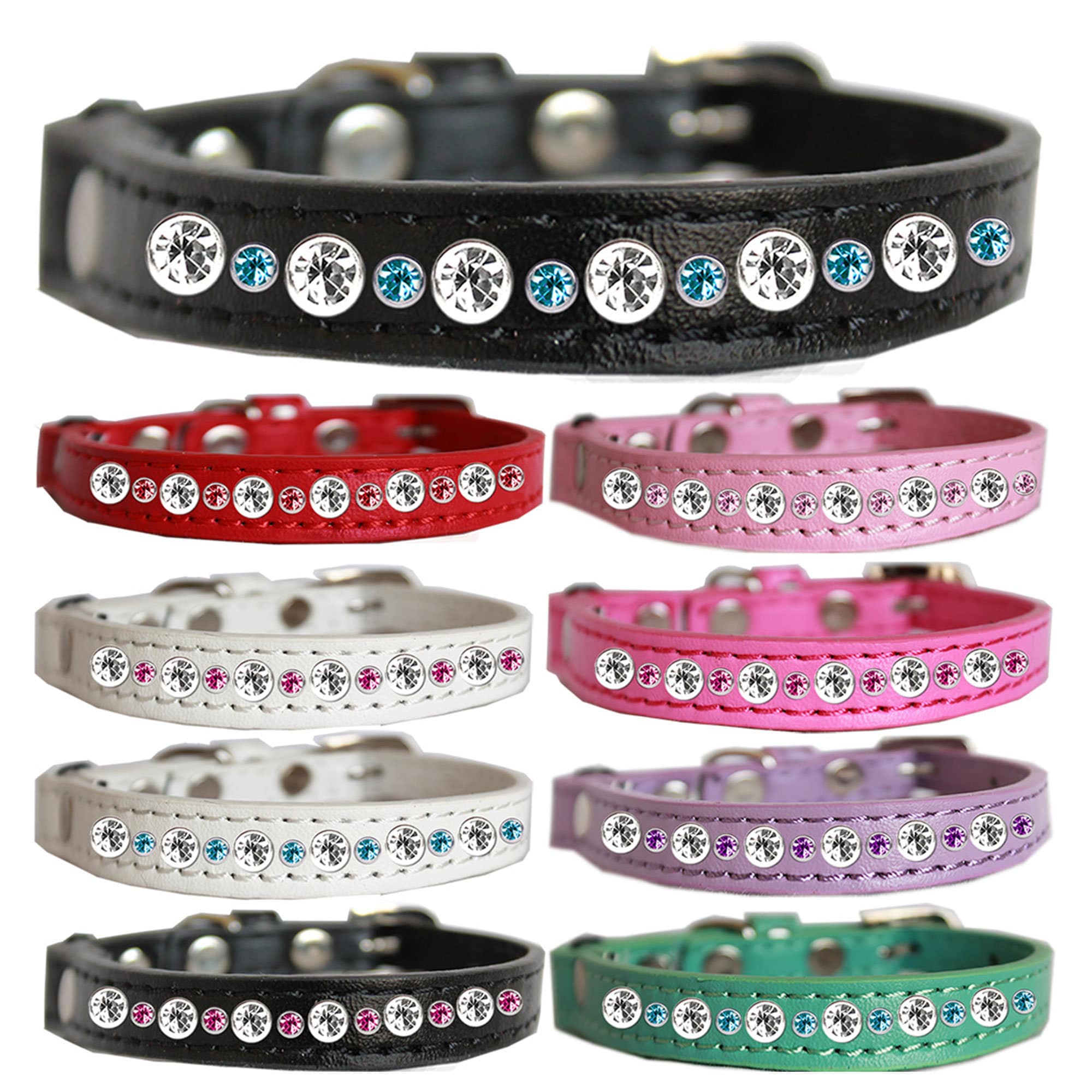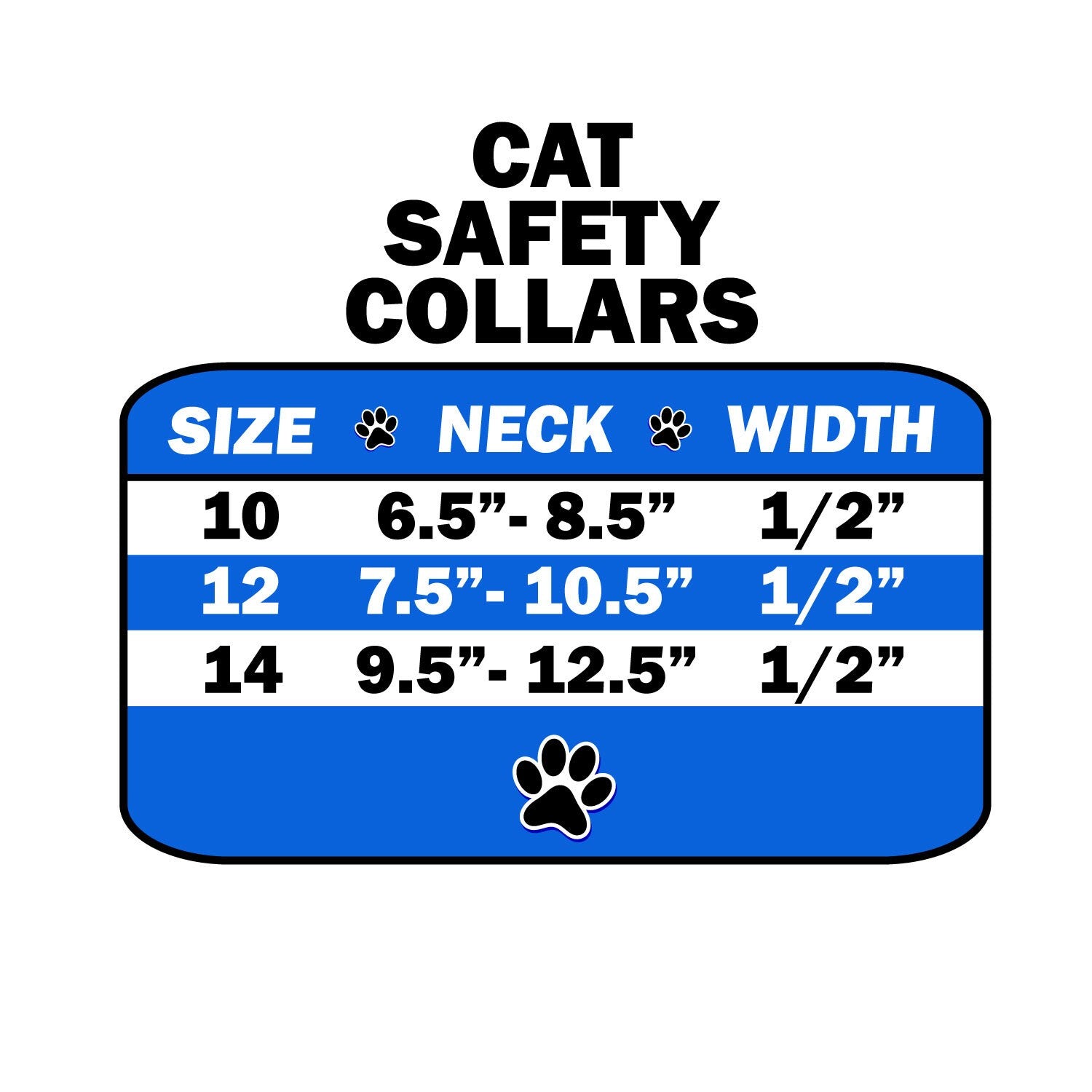Keep your precious cat safe and stylish with our cat safety collars! These cat collars are 1/2" wide premium collar is jeweled with alternating large clear rhinestones and smaller colored stones, featuring an elastic safety band.