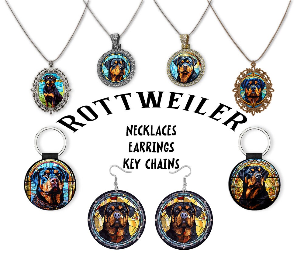 Dog Breed Jewelry Stained Glass Style, "Rottweiler"