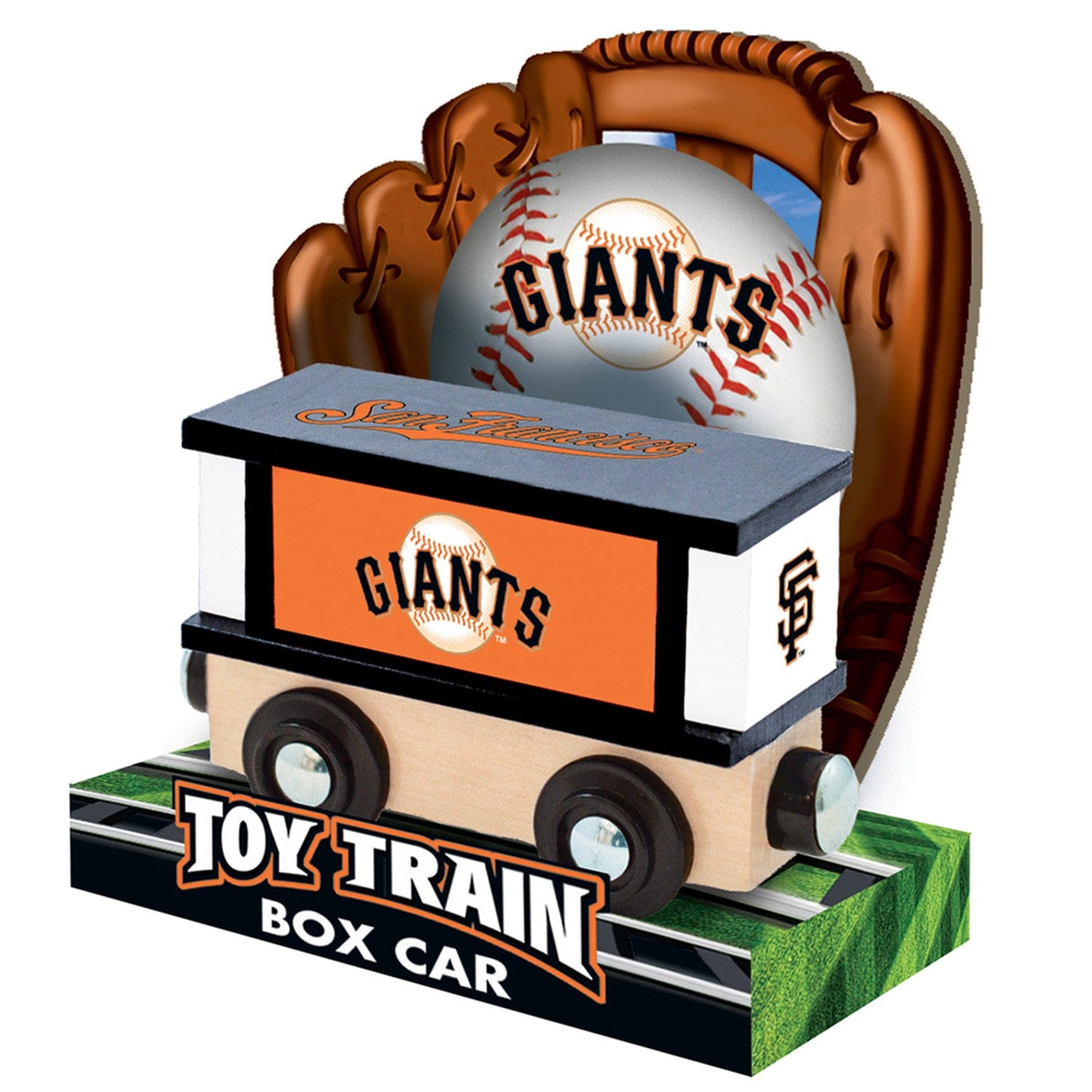 This MasterPieces MLB San Francisco Giants Box Car Train features a hand-painted real wood train with your favorite Giants team logo and colors! Each end of the train has secure magnets to easily connect to other trains sections. This box car is compatible with most 1" wooden train tracks, and is the perfect gift for all kids, ages 3 and up!