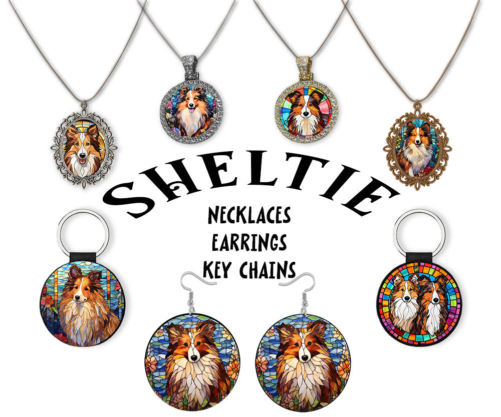 Dog Breed Jewelry Stained Glass Style, "Sheltie"
