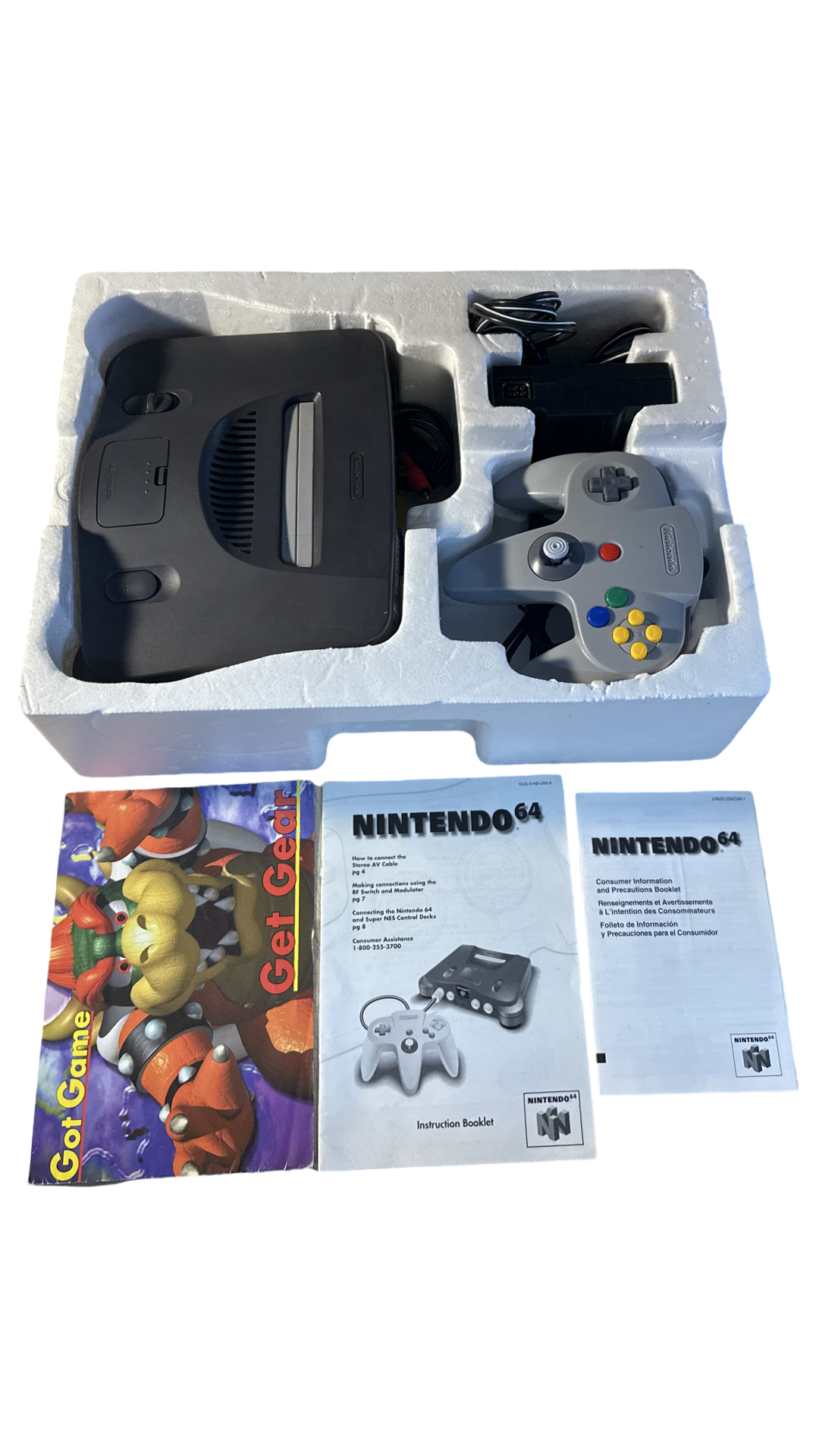 What is Included: N64 Game System, OEM Power Cable, OEM AV Cable, and 1 OEM Gray Controller