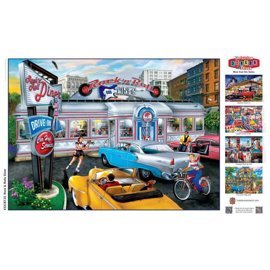 This MasterPieces 21" x 15" 500PC of Drive-Ins, Diners and Dives is perfect for all vintage car fanatics! The Rock 'n Rolla Diner is hopping and bopping. This puzzle is the perfect gift for anyone who appreciates the good old days! To reduce its impact on our environment, the chipboard used in this puzzle is made of recycled material.