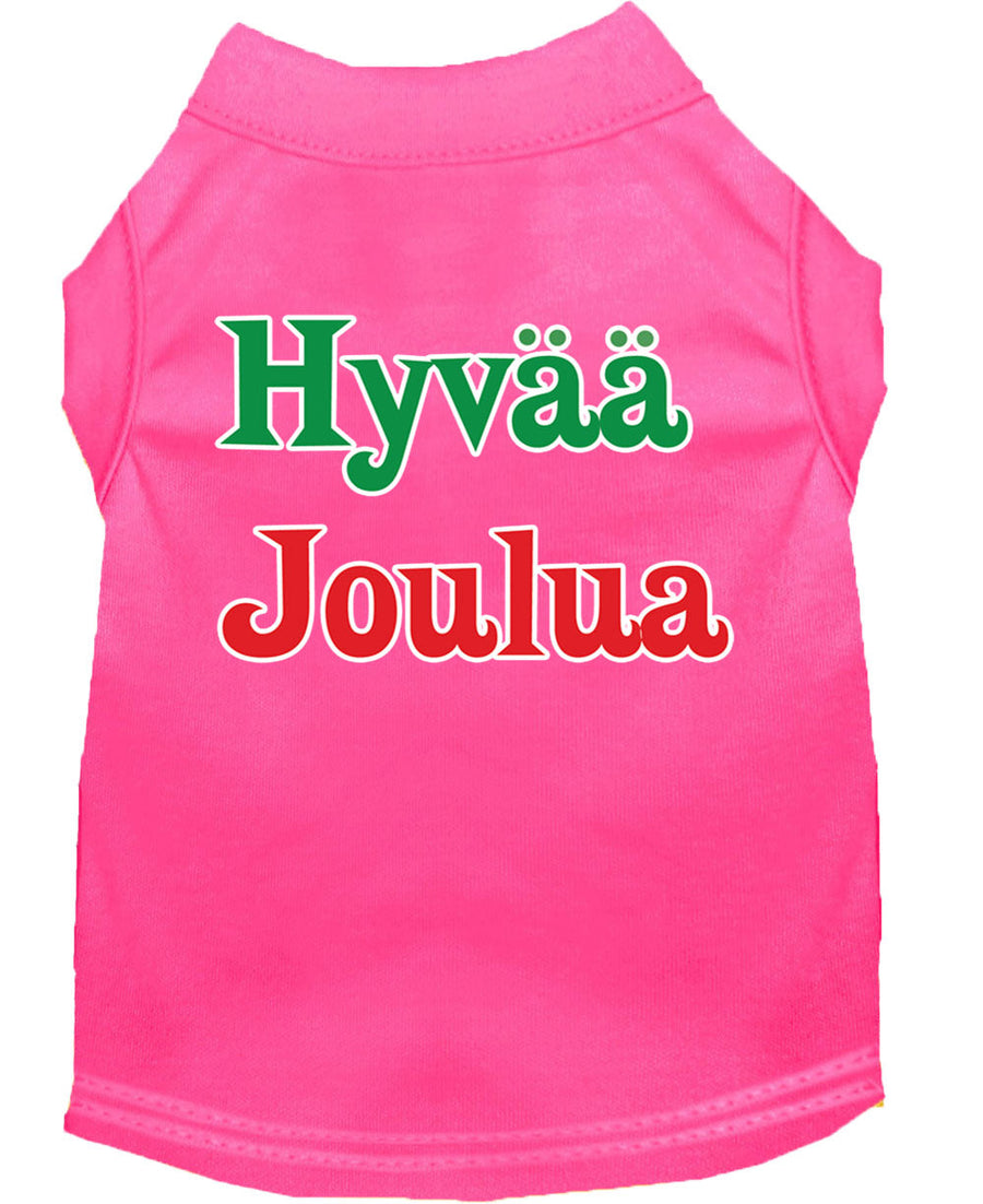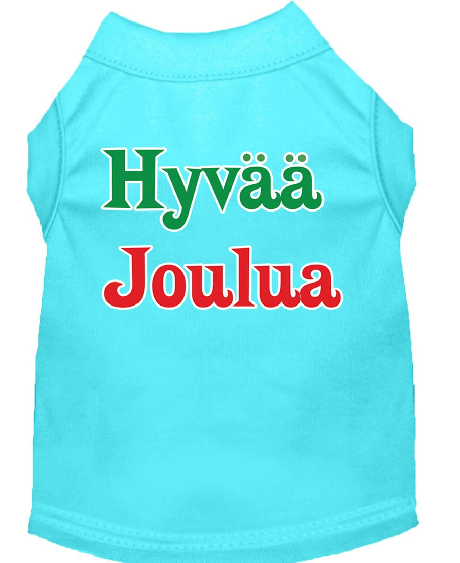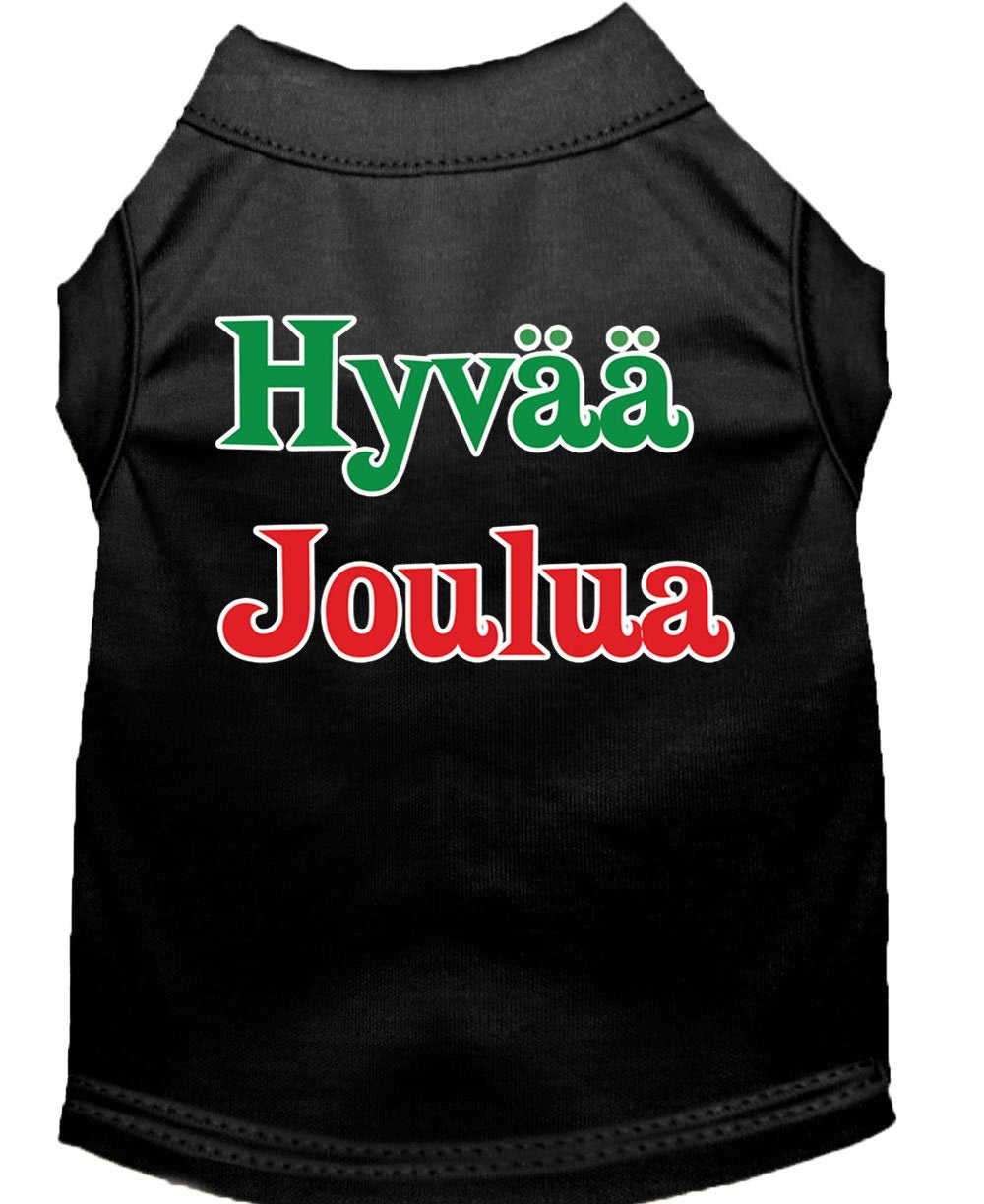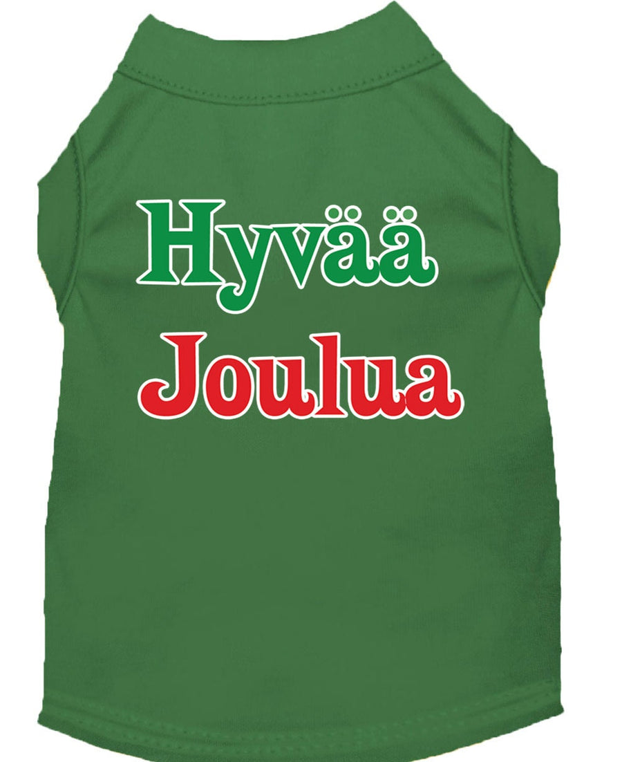Christmas Screenprinted Dog Shirt, "Hyvaa Joulua"