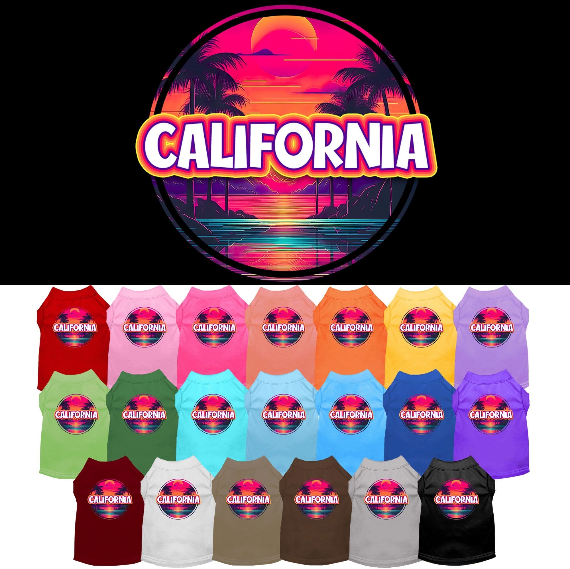 Pet Dog & Cat Screen Printed Shirt for Medium to Large Pets (Sizes 2XL-6XL), "California Neon Beach Sunset