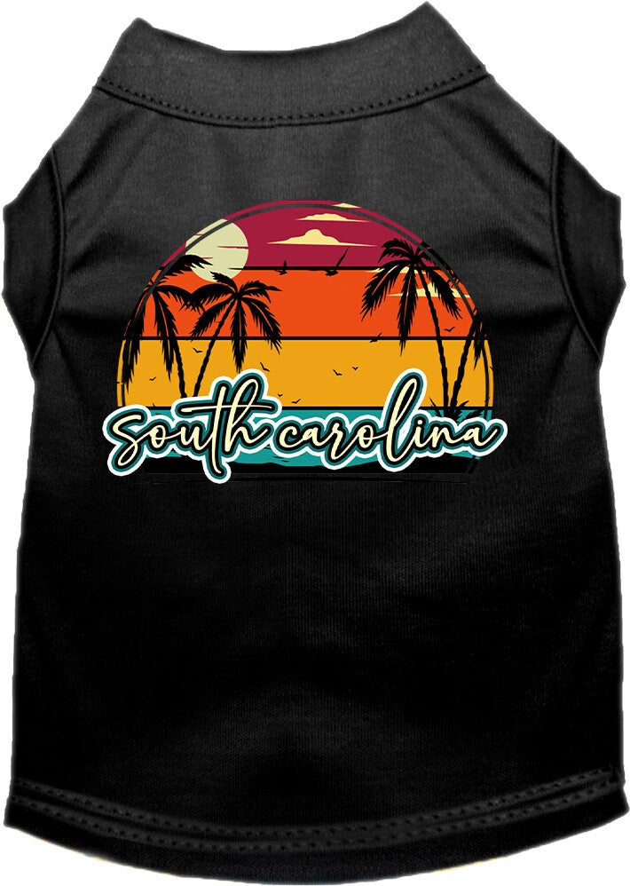Pet Dog & Cat Screen Printed Shirt for Medium to Large Pets (Sizes 2XL-6XL), "South Carolina Retro Beach Sunset"