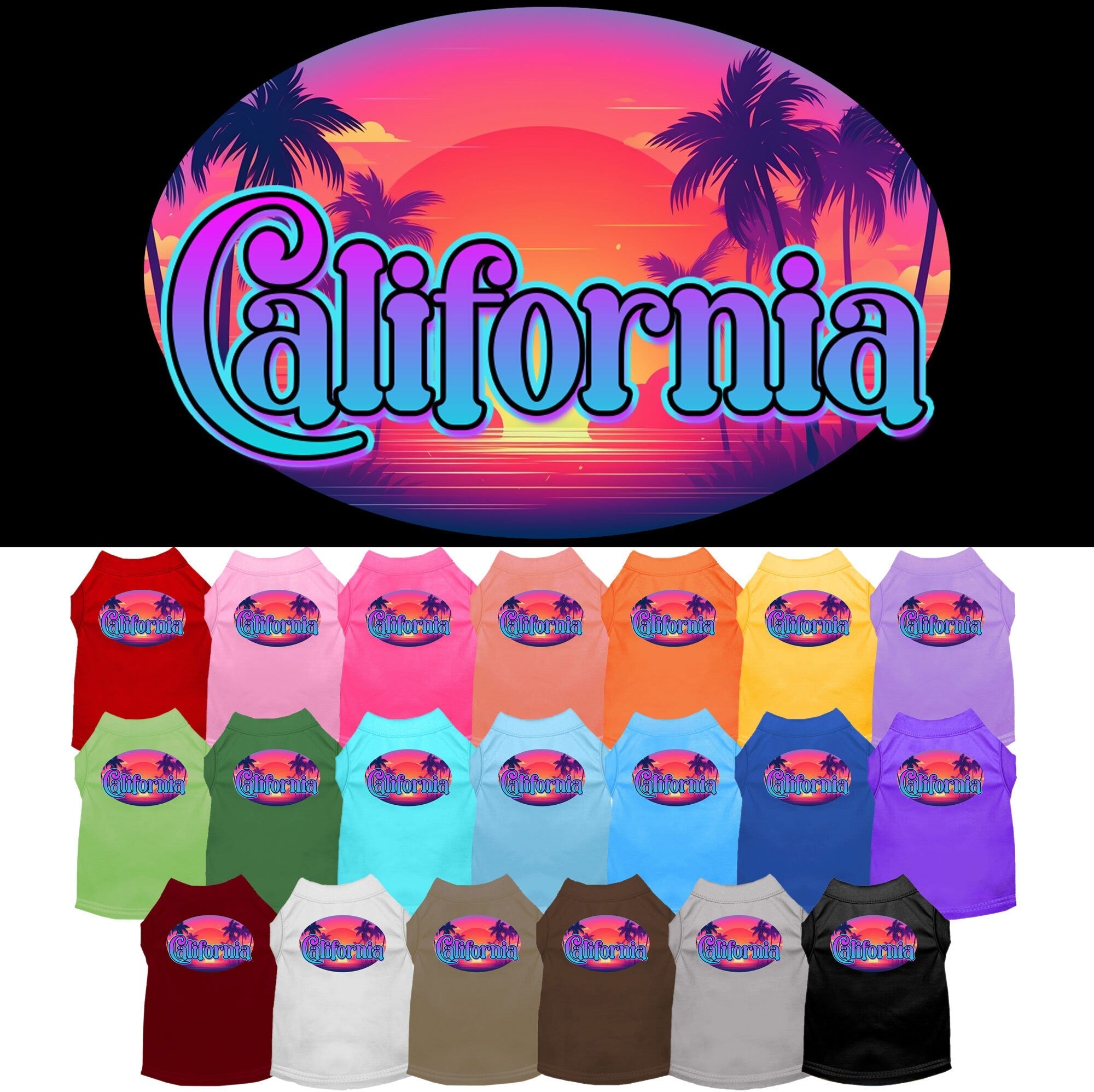 Pet Dog & Cat Screen Printed Shirt for Small to Medium Pets (Sizes XS-XL), "California Classic Beach"