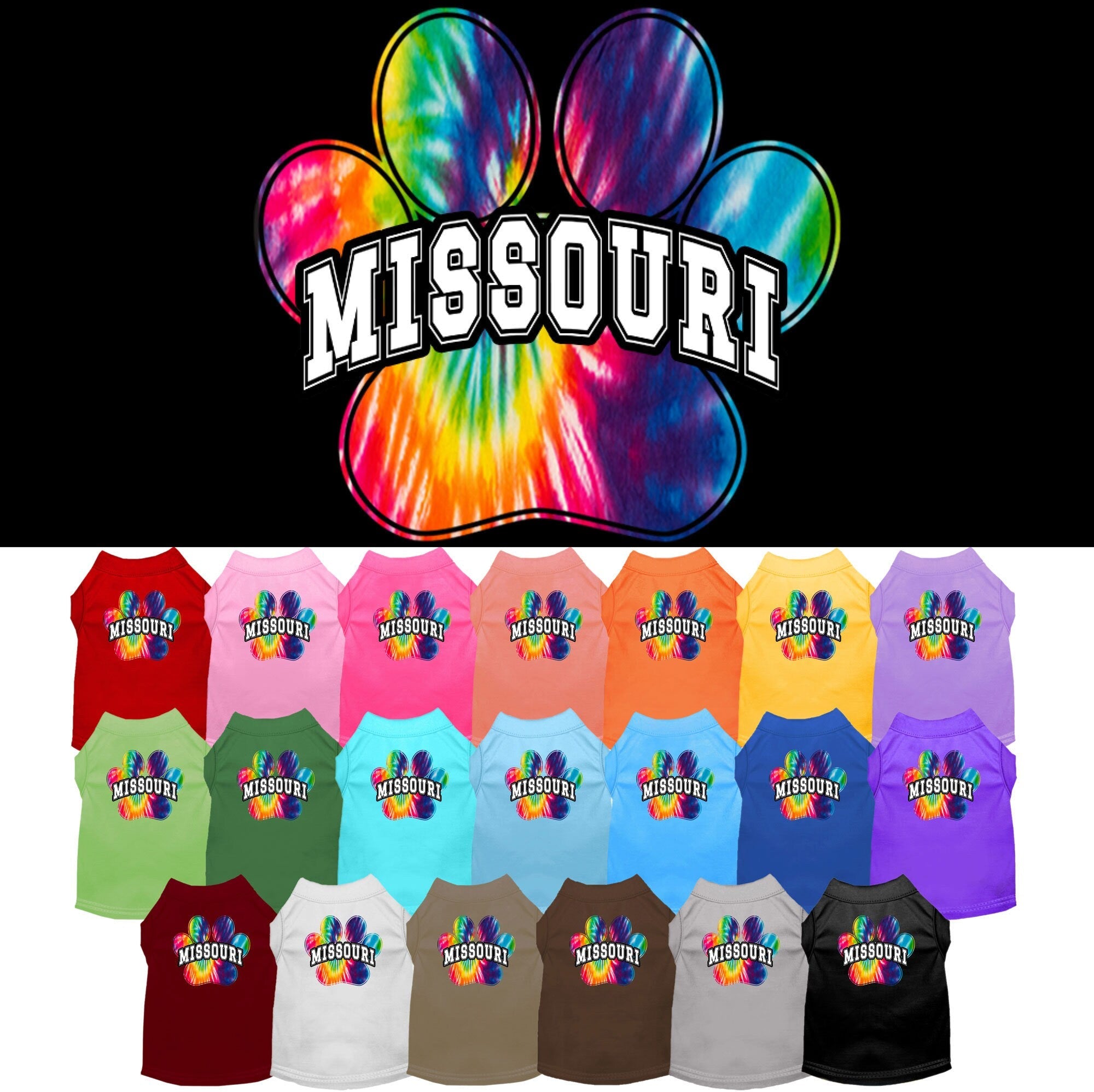 Pet Dog & Cat Screen Printed Shirt for Small to Medium Pets (Sizes XS-XL), "Missouri Bright Tie Dye"