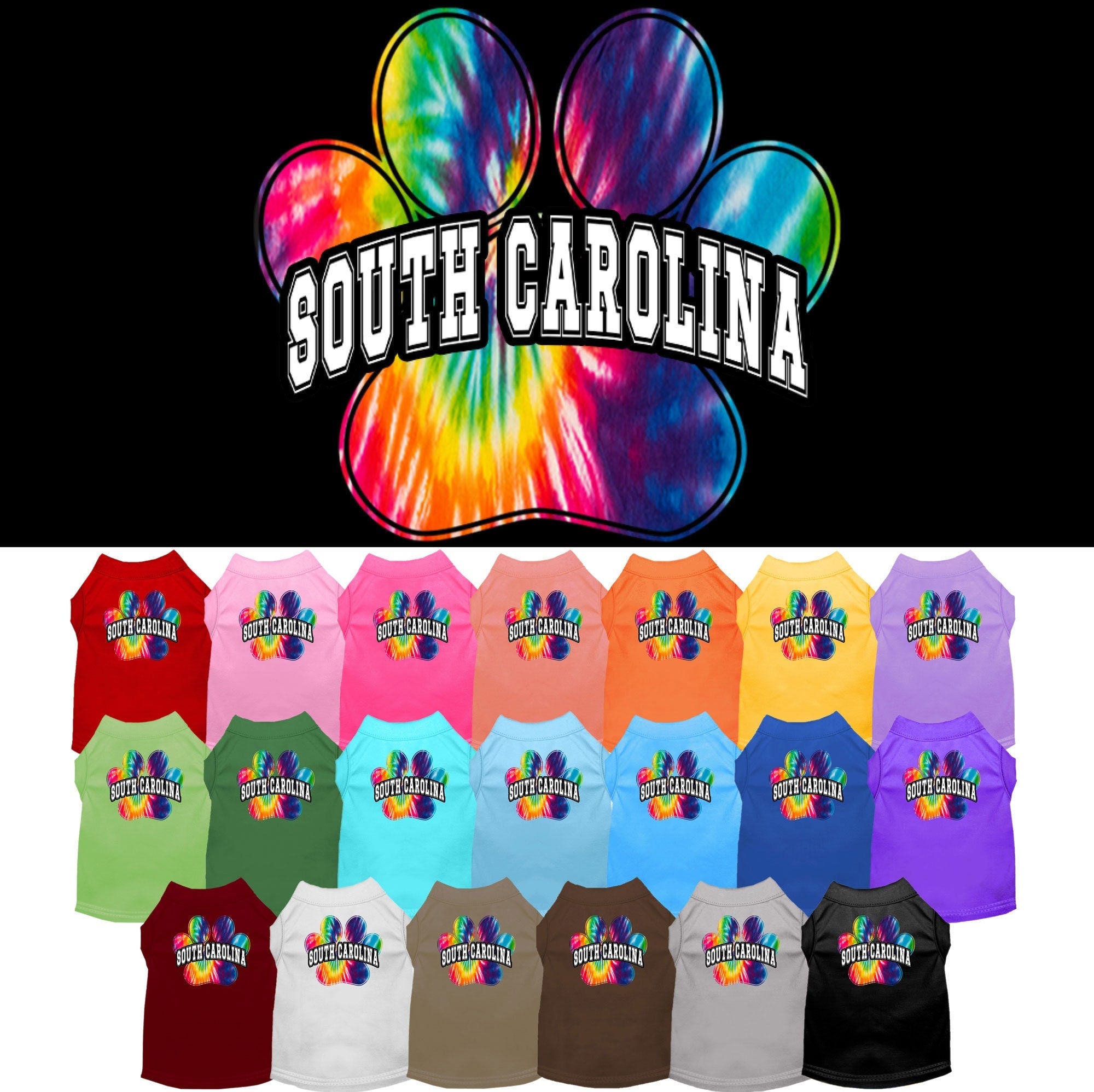 Pet Dog & Cat Screen Printed Shirt for Small to Medium Pets (Sizes XS-XL), "South Carolina Bright Tie Dye"