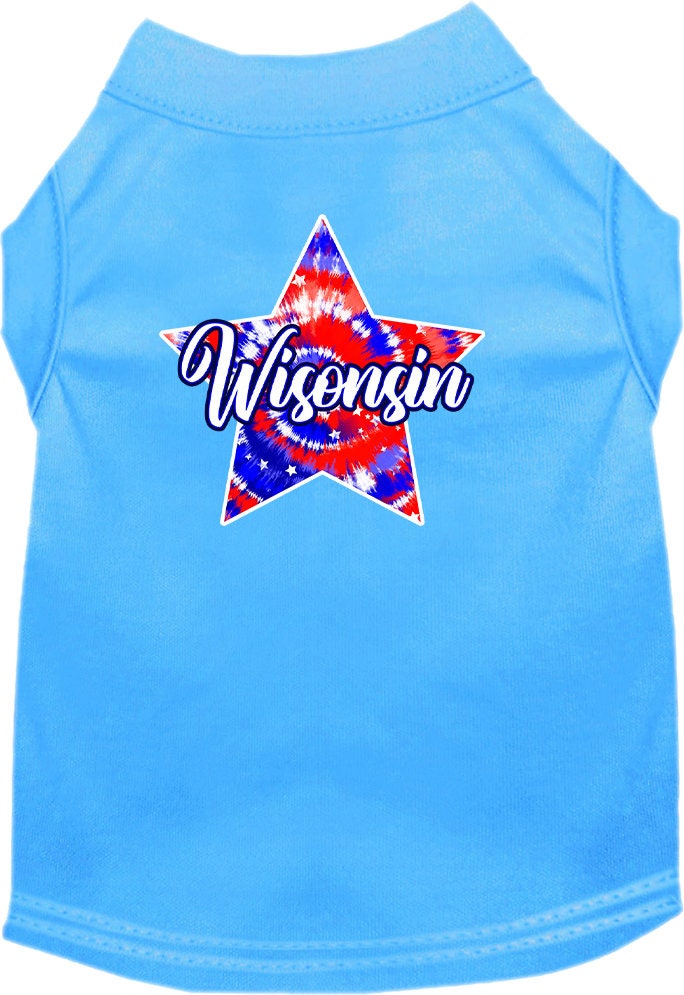 Pet Dog & Cat Screen Printed Shirt for Small to Medium Pets (Sizes XS-XL), "Wisconsin Patriotic Tie Dye"