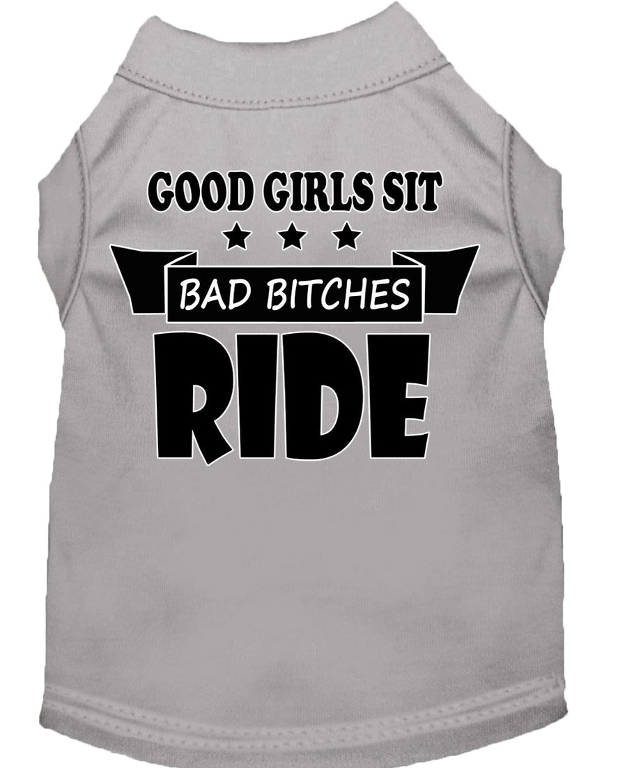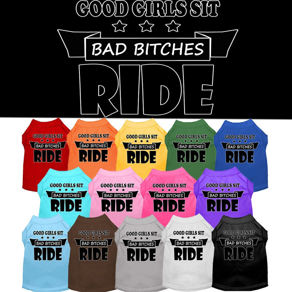 Pet Dog & Cat Shirt Screen Printed, "Good Girls Sit, Bad Bitches Ride"