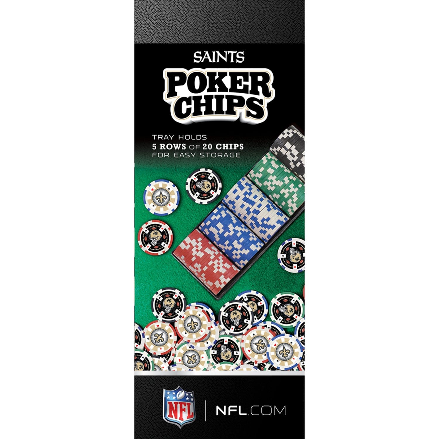 Looking for a great way to support your favorite team? Look no further than these MasterPieces officially licensed NFL New Orleans Saints 124 Piece Casino Style Poker Chips! These heavy 11.5-gram casino-style poker chips are perfect for Texas Hold'EM, Blackjack, and other card games. The set contains 100 chips in a black tray, each with two team designs. Whether you're playing for fun or in a tournament, these officially licensed poker chips are the perfect choice for all fans of the New Orleans Saints. Show your team pride, win in style, and always play with your teams Poker Chips!