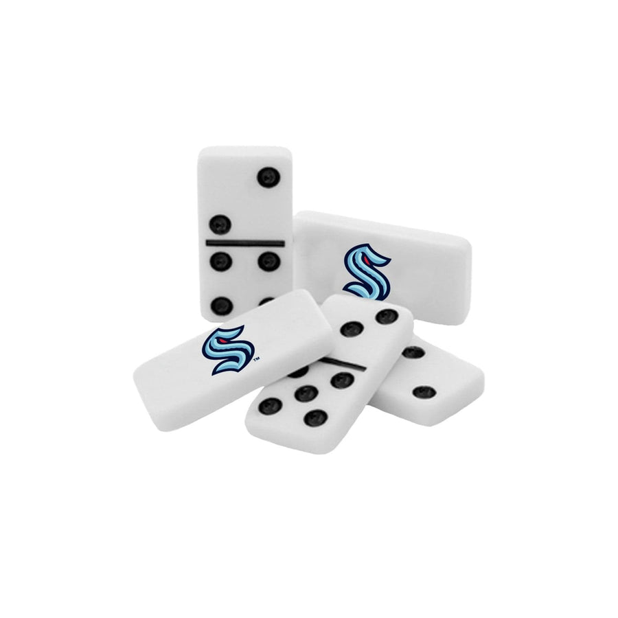 Experience the thrill of game day with the MasterPieces Game Day - NHL Seattle Kraken - 28 Piece Team Logo Double Six Domino Set. This custom dominoes set is perfect for sports enthusiasts and Seattle Kraken fans alike. Each of the 28 resin dominoes features the iconic team logo, making it a must-have addition to your Seattle Kraken merchandise collection. Housed in a collectible tin box, this set is not only a game but a keepsake. The double six dominoes set is designed for adults and children aged 6 and up, making it a versatile choice for family game nights or gatherings with friends. With easy-to-follow instructions included, players of all skill levels can enjoy the excitement of this Seattle Kraken game. The compact dimensions of the tin box make it a convenient travel dominoes set, allowing you to take the fun wherever you go. Crafted from durable plastic, these dominoes are built to withstand countless matches. Whether you're a fan of the Seattle Kraken or simply love a good game of dominoes, this set is sure to provide hours of entertainment. Ideal for up to four players, it's a great way to engage in friendly competition. Add this unique piece to your collection and show off your team spirit with pride.
