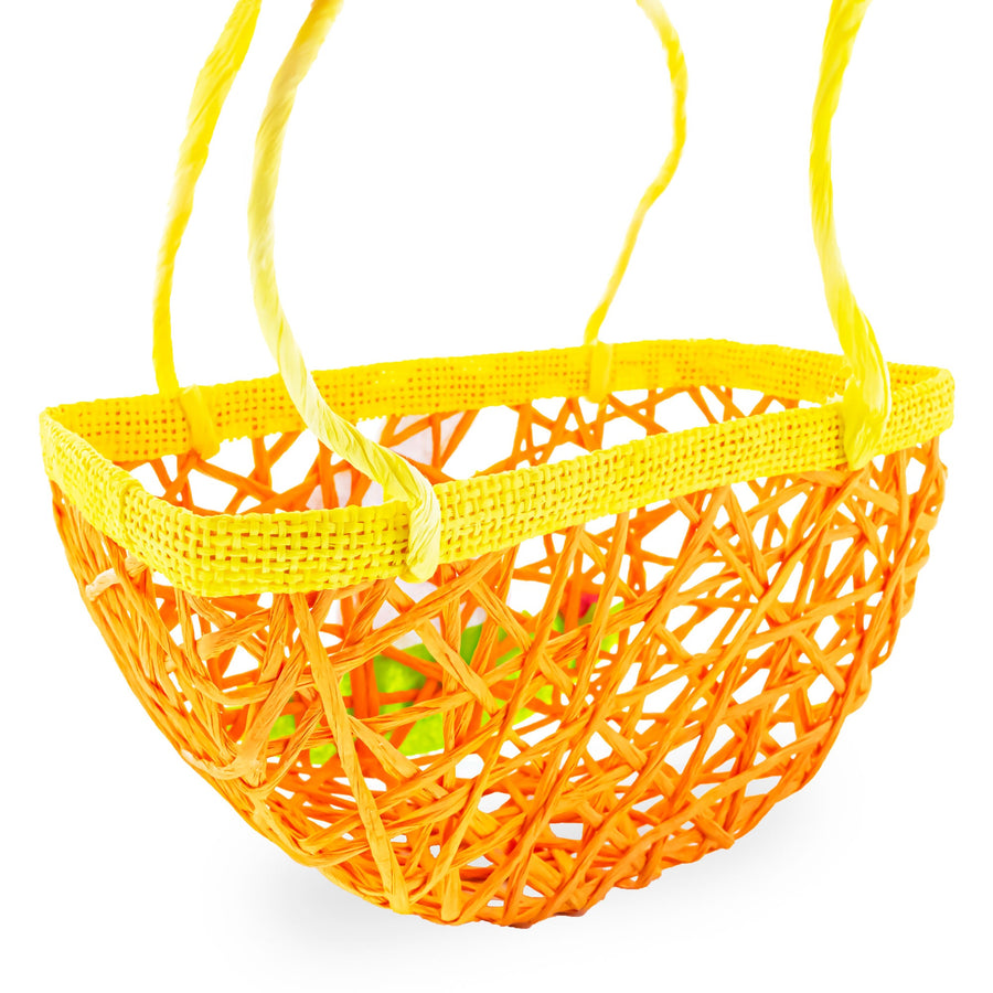 These baskets are a perfect set for a boy and girl, each comfortably fitting 12 eggs. They are made of a nonwoven fabric, have handles for easy carrying, and feature a bunny with flowers and beads on the front of each. The perfect carrying basket for treats and eggs when Easter egg hunting!
