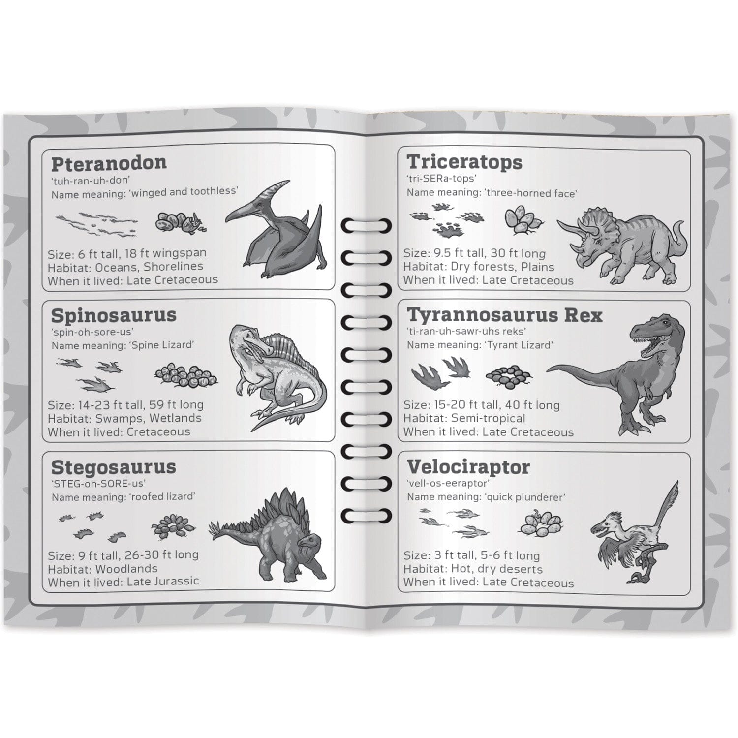Kids will love this MasterPieces Jr. Ranger Dino Tracks Card Game as they learn about the different dinosaurs and their habitats. The game includes 39 illustrated playing cards, a spinner, and a Play 'N Learn Guide. Spin the spinner to draw cards, and complete scenes featuring each dinosaur in its habitat, along with the correct tracks and eggs! The first player to complete three scenes wins! This fun game is perfect for kids and families on family game night.