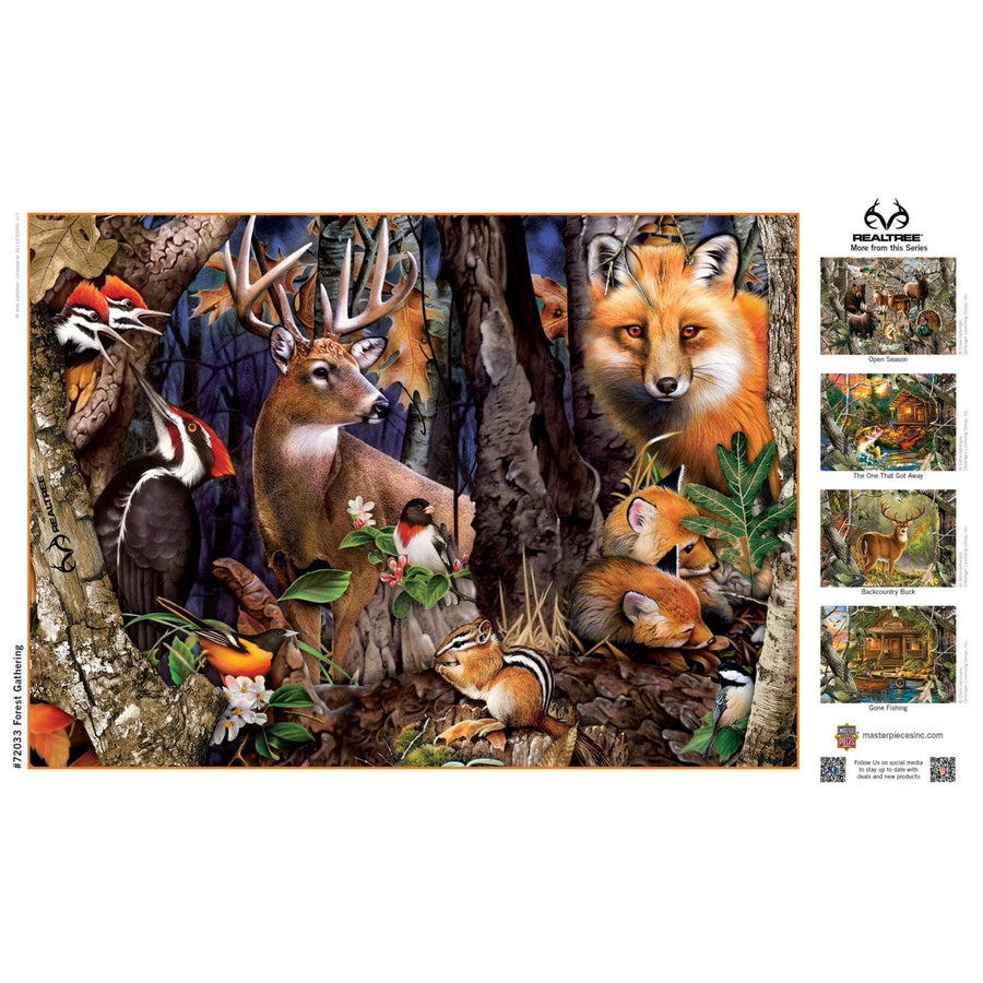 These MasterPieces 19.25" x 26.75" 1000pc Realtree Puzzle of the beauty and diversity of forest wildlife. Framed in classic Realtree Camo, take a peek into their world. To reduce their impact on our environment, the chipboard used in these puzzles is made of 100% recycled material.