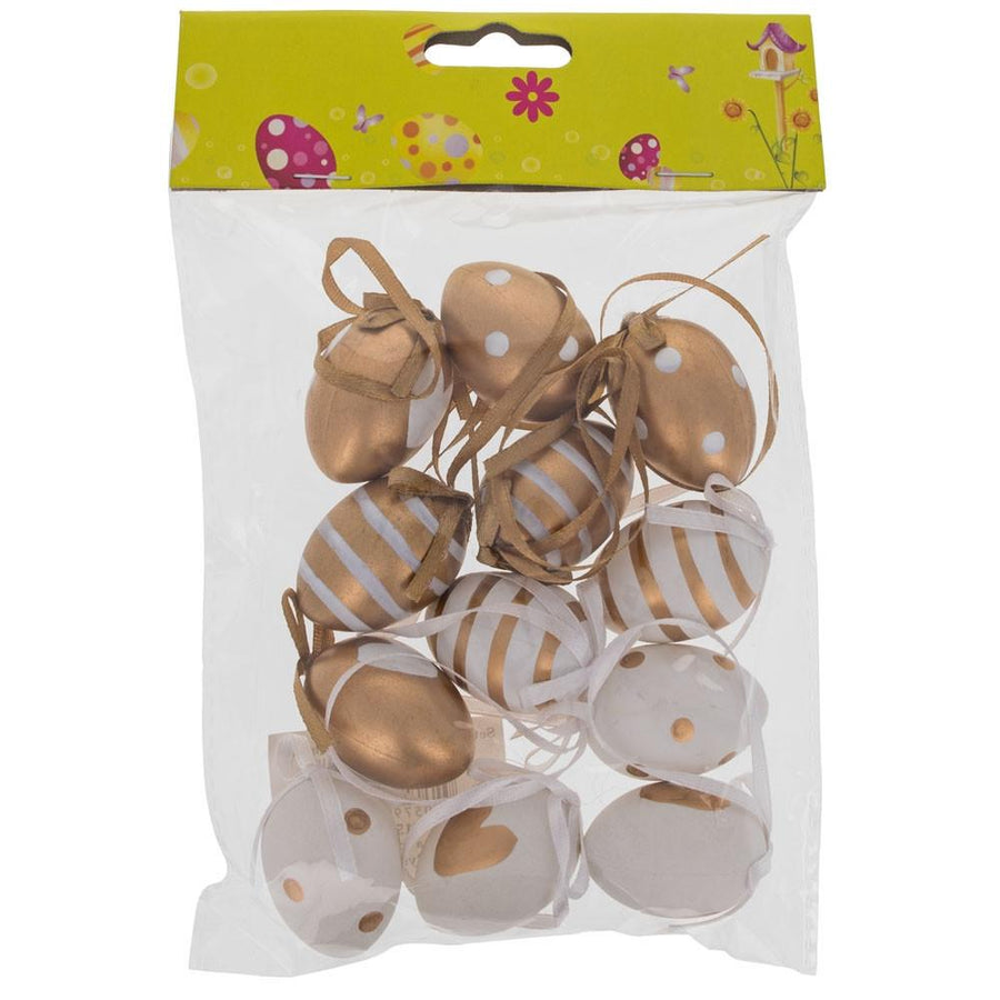Set of 12 Miniature Gold and White Plastic Easter Egg Ornaments 1.6 Inches