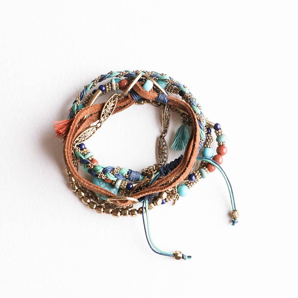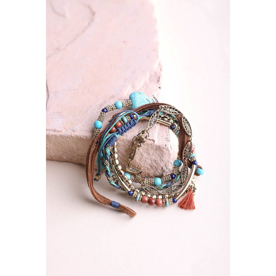 This boho chic piece features layers of natural stone, mixed beads, and soft suede, creating a stunning blend of textures and colors. Perfect for adding a trendy, artisan touch to any outfit, this versatile bracelet effortlessly combines fashion-forward style with a laid-back vibe.