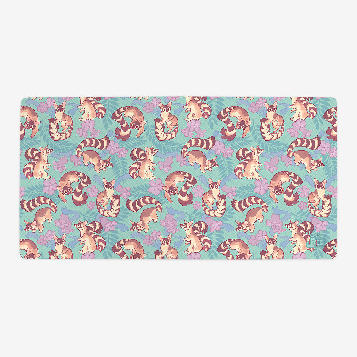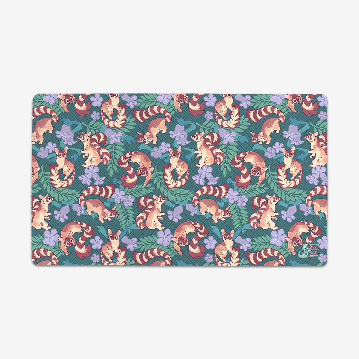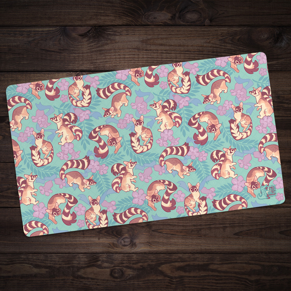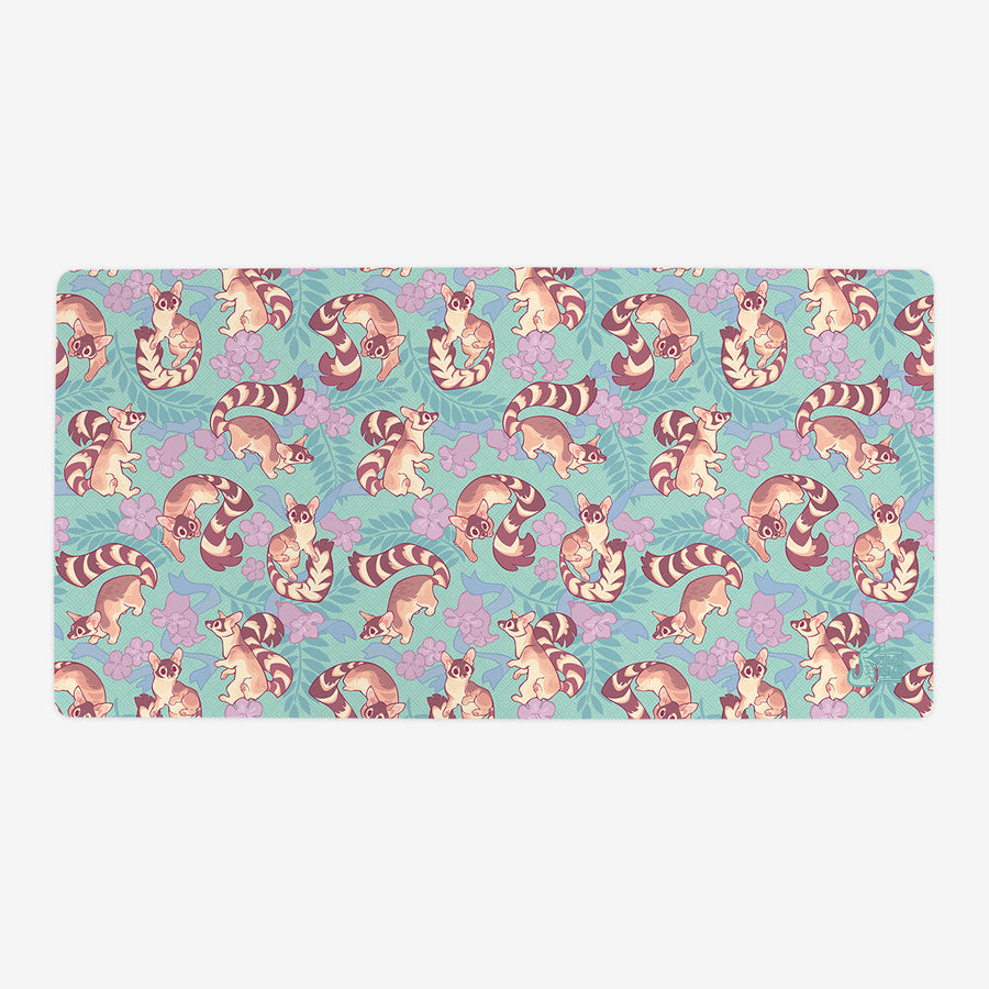 Oversized Playmat measures at 28” x 14” inches and is 1/16 of an inch thick. It’s made with a smooth cloth top and strong rubber backing.