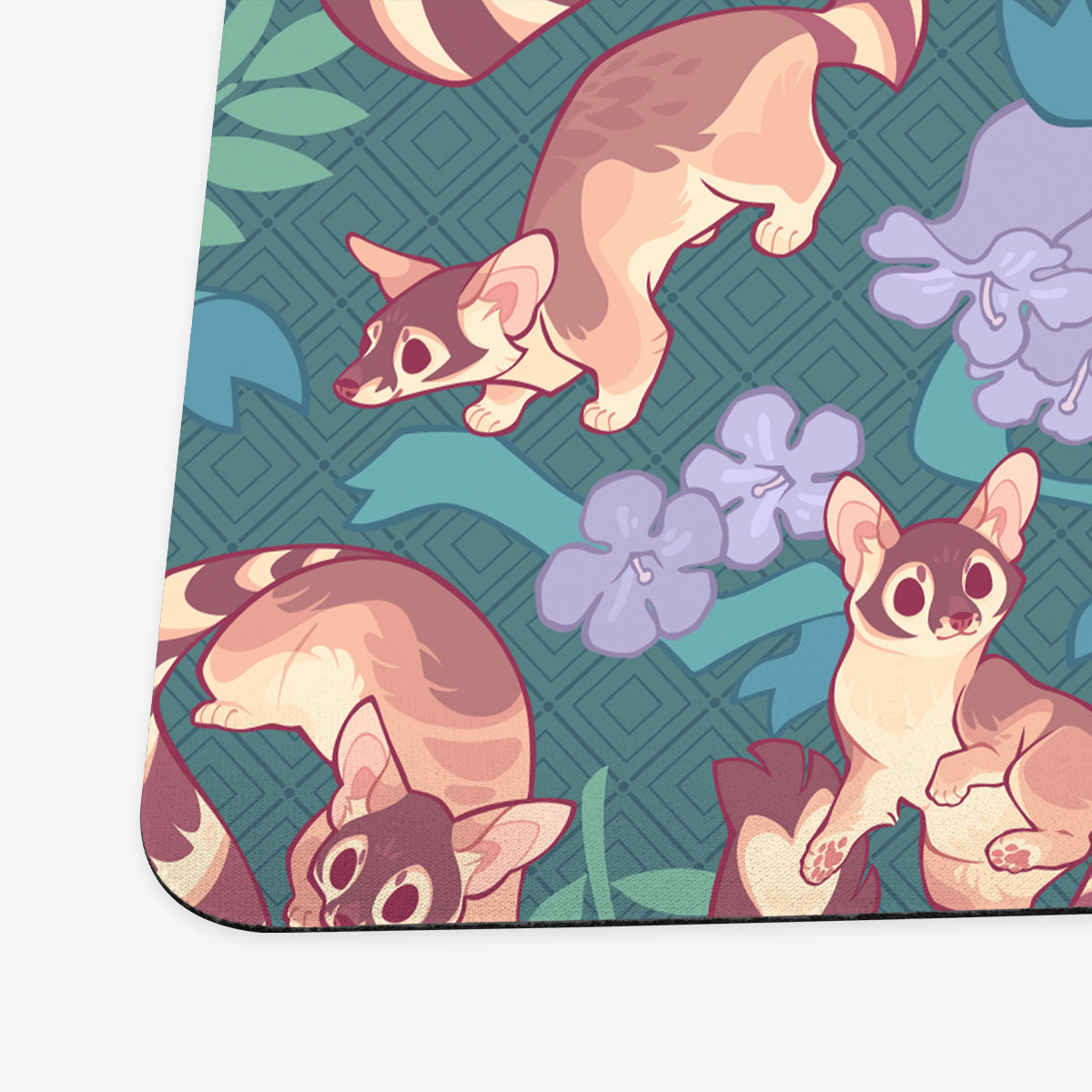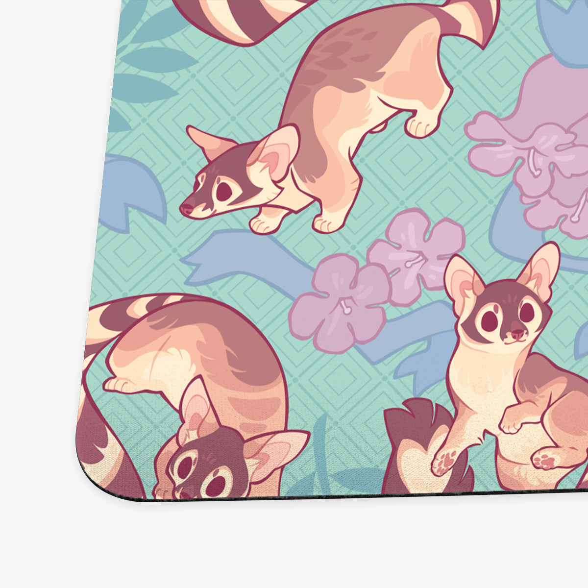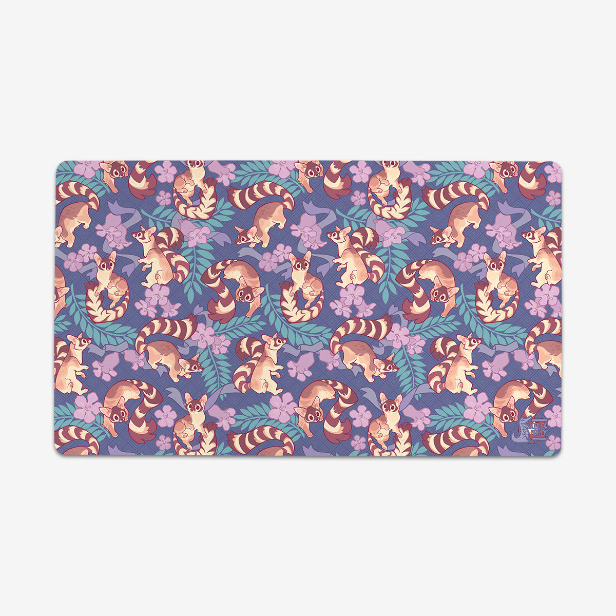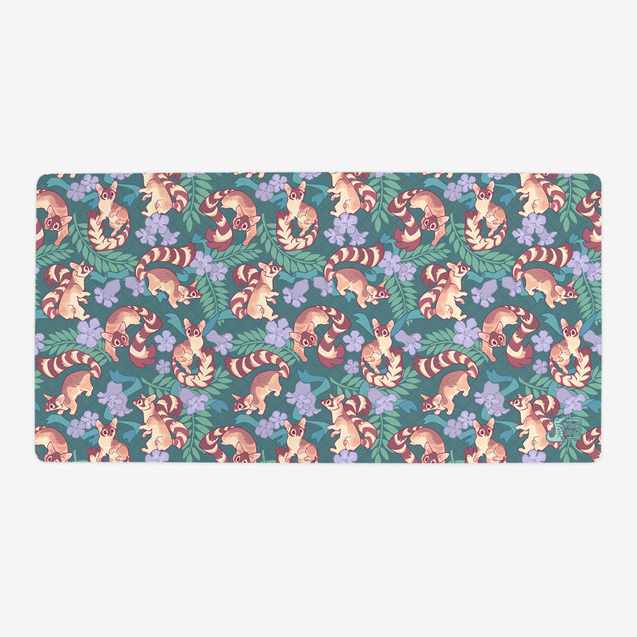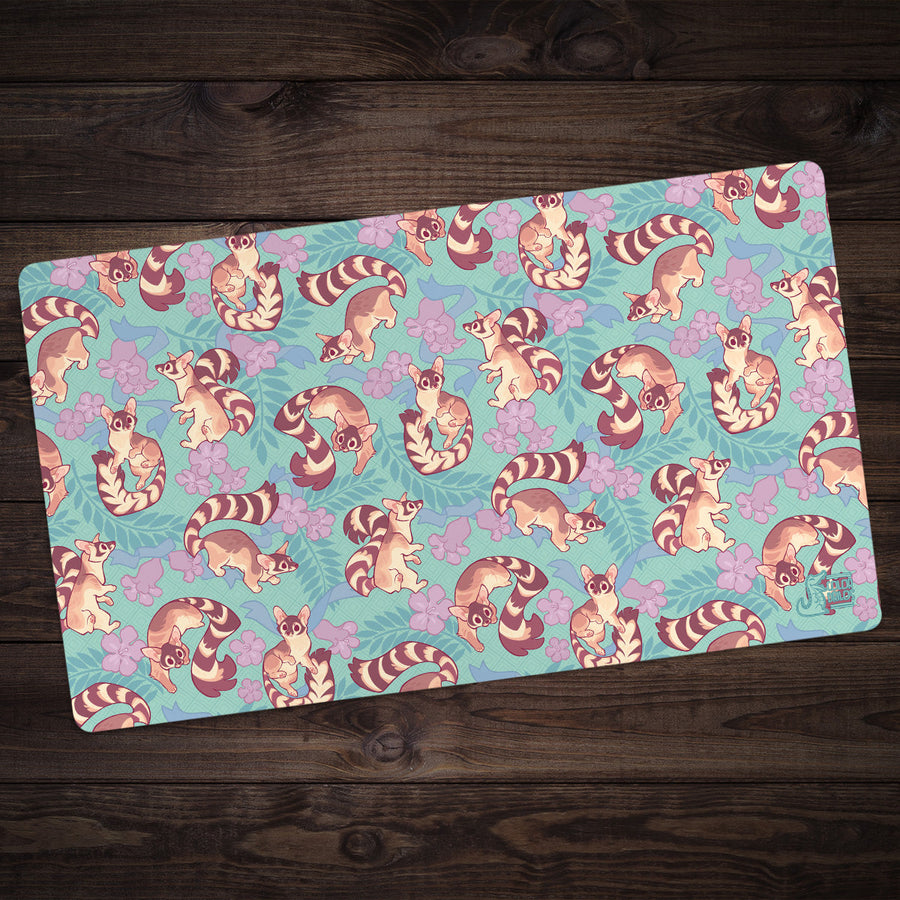 Oversized Playmat measures at 28” x 14” inches and is 1/16 of an inch thick. It’s made with a smooth cloth top and strong rubber backing.