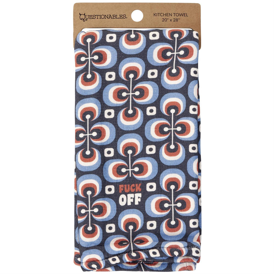 Two words. No further questions. This super-soft cotton kitchen towel says it all flaunting a stylish retro inspired pattern with a sassy sentiment that reads "Fuck Off."