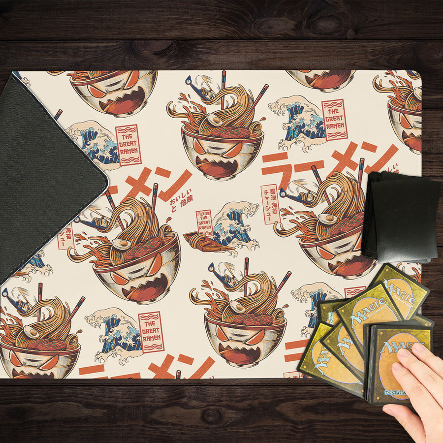 Ditch the ordinary and add a fresh flavor to your collection that is sure to make you drop your chopsticks. Featuring premium materials and amazing art from Ilustrata, Great Ramen is more than just a playmat - it's a tabletop battleground where flavor becomes your ally and strategy intertwines with slurp-worthy satisfaction. The sleek surface ensures smooth card movement while guarding against spills (so you can enjoy your real ramen worry-free). Plus, the non-slip rubber backing keeps your game plan secure, even during the most intense showdowns. Whether you're summoning dragons or savoring your favorite cards, the Great Ramen playmat adds a dash of fun to every match. Now that’s a recipe for victory!