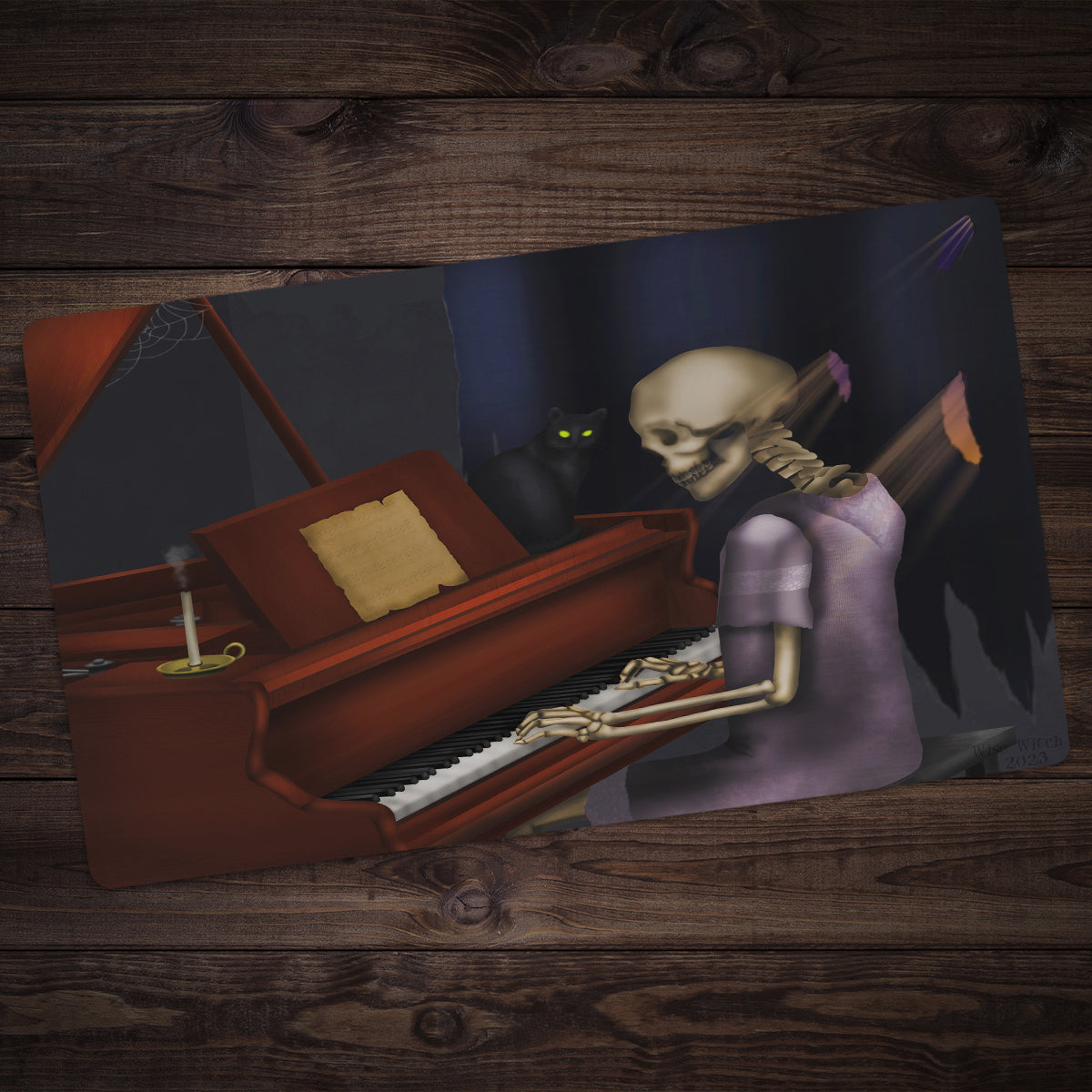 Standard Playmat measures at 24” x 14” inches and is 1/16 of an inch thick. It’s made with a smooth cloth top and strong rubber backing.