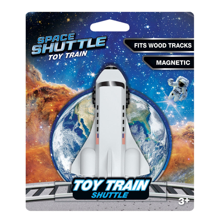 This Space Shuttle Toy Train Engine is the perfect addition to your child's wooden train track! magnetic, this train engine is compatible with most 1" tracks. With a big imagination, your child will love playing with this detailed, wood Space Shuttle train engine. Gather family and friends to enjoy this whimsical toy!