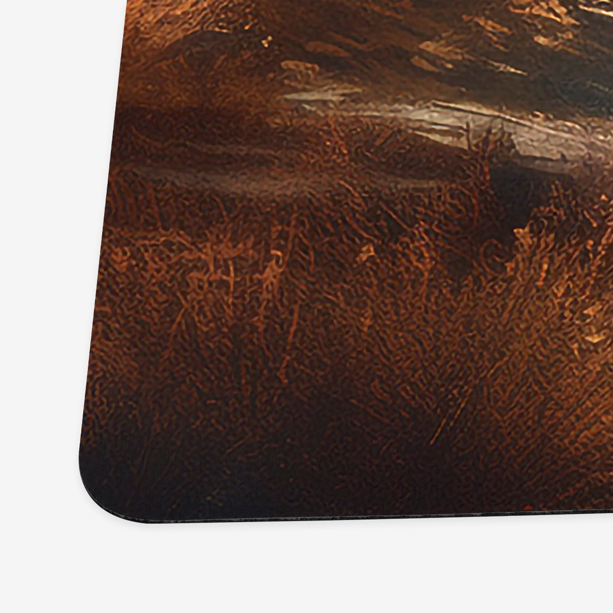 Standard Playmat measures at 24” x 14” inches and is 1/16 of an inch thick. It’s made with a smooth cloth top and strong rubber backing.