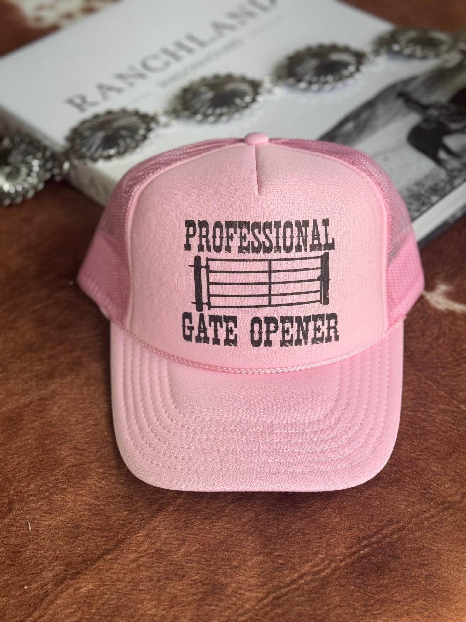 The Professional Gate Opener Trucker Hat is a must-have for the unsung heroes of every ranch and rodeo! With a playful nod to the hardest-working seat in the truck, this hat is perfect for ranch hands, rodeo sweethearts, and anyone who knows their way around a fence line. Whether you're holding the gate or calling the shots, this hat adds a touch of humor and country charm to any outfit.