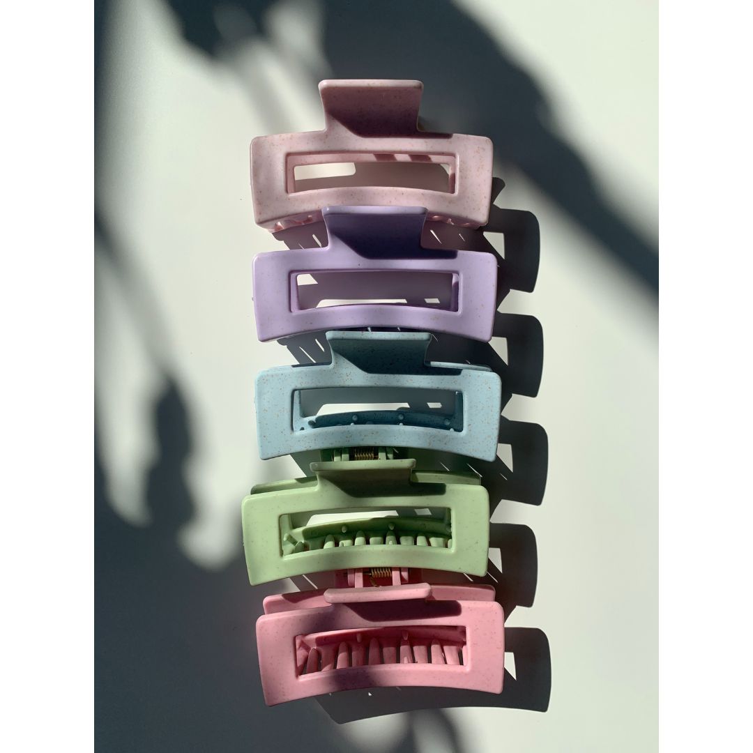 The Jada is a sophisticated rectangular claw clip with an unexpected speckle finish.