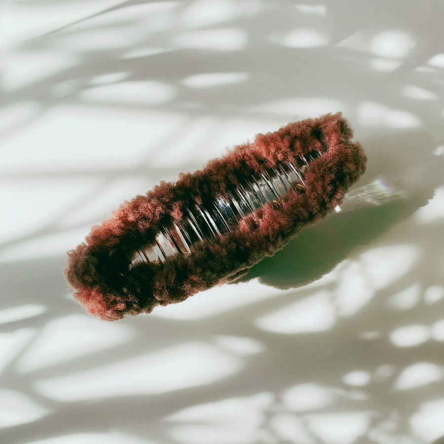 Elevate your hairstyle with the luxurious Velvet Claws Hair Clip featuring triangle plush faux fur in copper mauve. This strong claw clip is perfect for long and thick hair, making it an excellent gift for those with luscious locks. The lightweight construction and secure hold make it ideal for creating effortless ponytails or adding a touch of sophistication to any look.