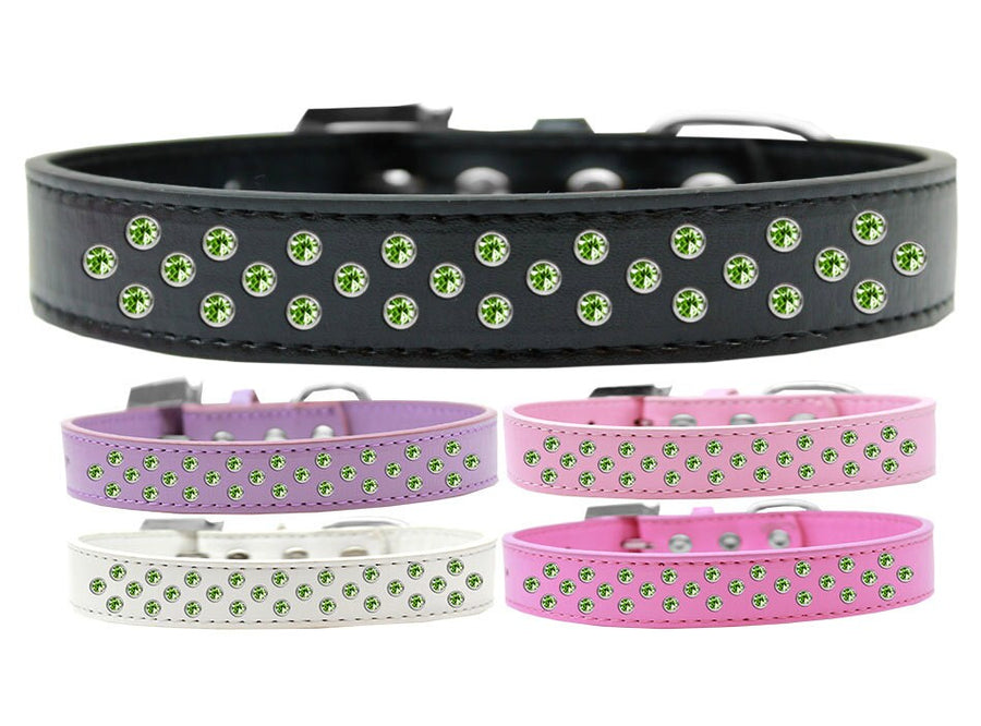 These stellar 3 Row Crystal Collars, which we lovingly call our "Sprinkles" line are a faux leather, featuring crystals around the outside. This collar is available in multiple collar/stone colors, and an array of sizes. These soft collars are 3/4" wide and features three sprinkled rows of crystal stones.