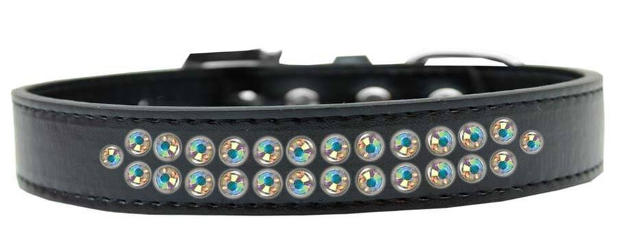 Dog, Puppy & Pet Fashion Leather Collar, "Two Row Aurora Boreale Crystal"