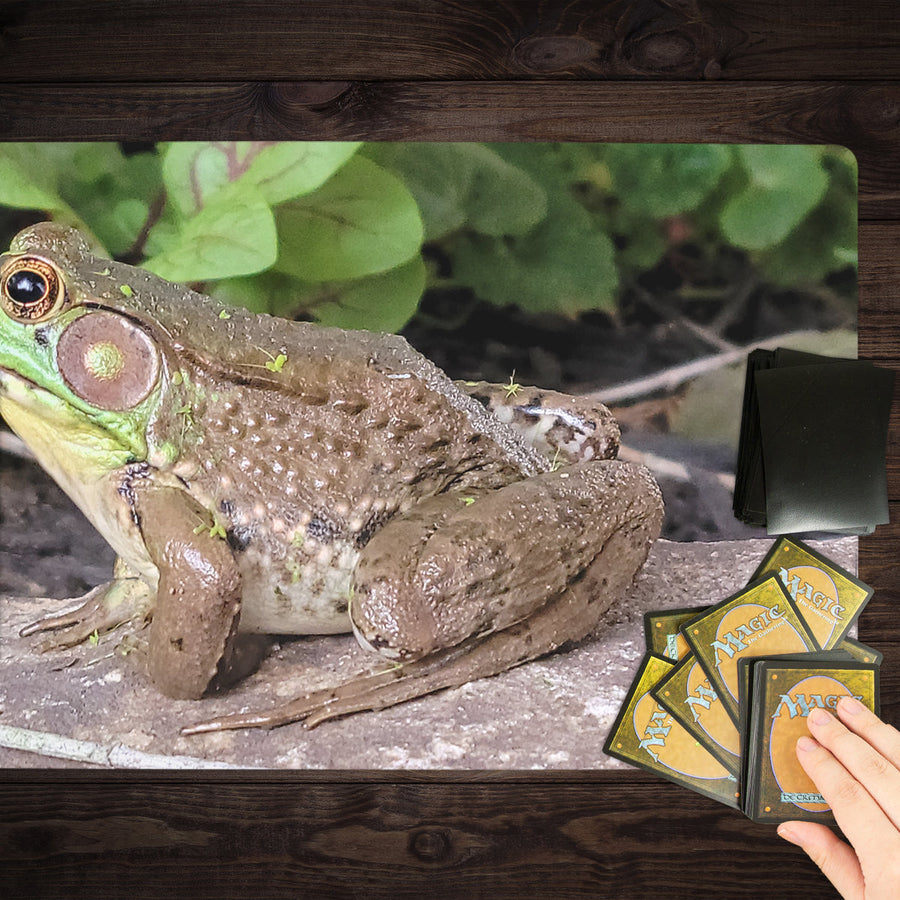 Oversized Playmat measures at 28” x 14” inches and is 1/16 of an inch thick. It’s made with a smooth cloth top and strong rubber backing.